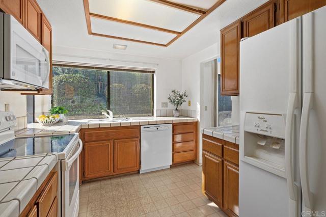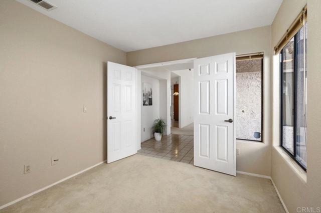 Comfort, Convenience and Opportunity – Rancho Bernardo Fairview Heights North, a gated neighborhood, benefits from the multiple advantages of life in Rancho Bernardo and membership in the coveted community of Bernardo Heights. This California style 2 bedroom, 2 bath property has an optional third bedroom, currently built-out as office space. The kitchen is designed to serve both an eat-in area and a dedicated dining room. The living room features a gas fireplace, high ceilings and rich natural light from expansive windows. Primary suite offers dual vanity sinks, large walk-in closet, soaking tub and oversize walk-in shower, with a sunroom perfect for slo-mo mornings. Sliding doors provide east access to exterior patios from both the dining room and the primary suite’s sunroom. Property has abundant storage with hallway cabinet and coat closet. The two-car garage is attached with direct access. Taken together, a good fit for downsizers. The HOA maintains the entire front yard and common grounds. Rancho Bernardo living is private, secure and active by choice. Loaded with up-scale amenities and distinguished by first-rate schools. Neatly split by Interstate 15, Rancho Bernardo neighborhoods are quickly connected to the thriving North County area for services, shopping and entertainment. Fairway Heights residents enjoy the privileges offered by the Community Recreation Center with swimming/spa, tennis/pickle ball courts, a playground and events clubhouse. Nearby biking and hiking trails, world-class golf and the 27 miles of Lake Hodges shoreline make outdoor life easily available. This is a unique opportunity to build long-term value while living in the rolling, sunlit hills of one of San Diego’s most desirable neighborhoods. This property is offered in as-is condition.