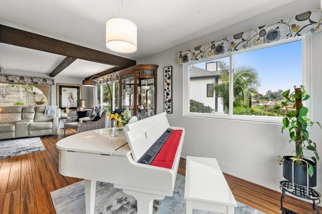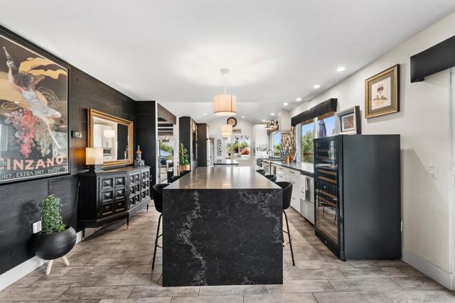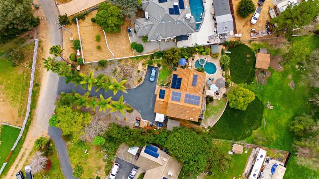 Exceptional 1.13-acre view property offering privacy, space, and resort-style living in the heart of Fallbrook. This 2,153 sq ft home features 3 bedrooms, 2.5 bathrooms, and a dedicated downstairs office. Bamboo flooring, recessed lighting, and a wood-burning fireplace in the family room create a warm and inviting interior. The kitchen is designed for both function and style with black quartz waterfall countertops, lighted soft-close cabinetry, and matching G.E. Café appliances including a French door refrigerator, double oven, 6-burner stove, microwave, and dishwasher. Built-in coffee bar, whole-house water system, and filtered water at the kitchen sink add to the home’s thoughtful upgrades. Outdoor amenities include upper and lower entertaining areas, a 3-level pool, built-in BBQ, and fire pit. The expansive lot provides space for a potential ADU and room for RVs, boats, and recreational toys. Additional features include a permitted 10x10 shed, chicken coop, raised garden beds, and mature fruit trees (fig, apricot, avocado, orange, lemon, plum, peach, and blood orange). 30 owned solar panels, a tankless water heater, unfinished basement for storage, and a 45" culvert located behind the property along Olive Hill Rd complete the offering. A rare combination of usable acreage, privacy, and flexibility — just minutes from town.