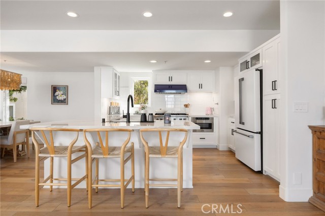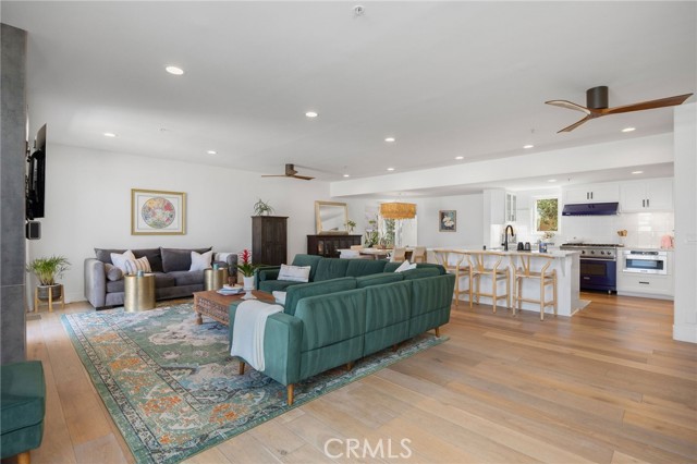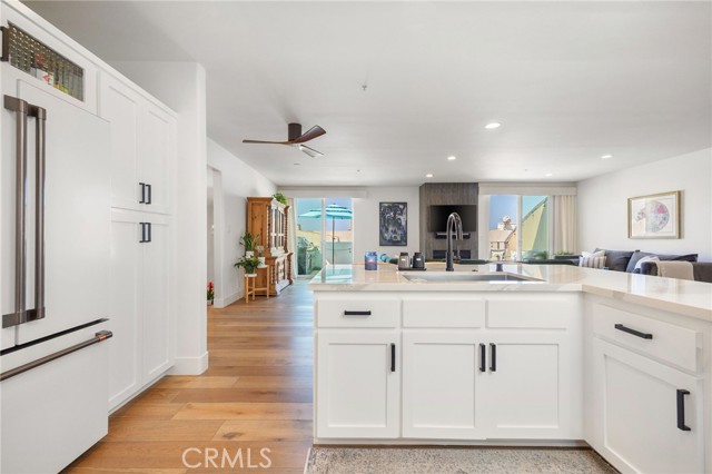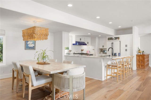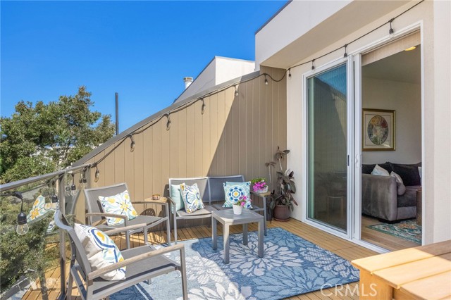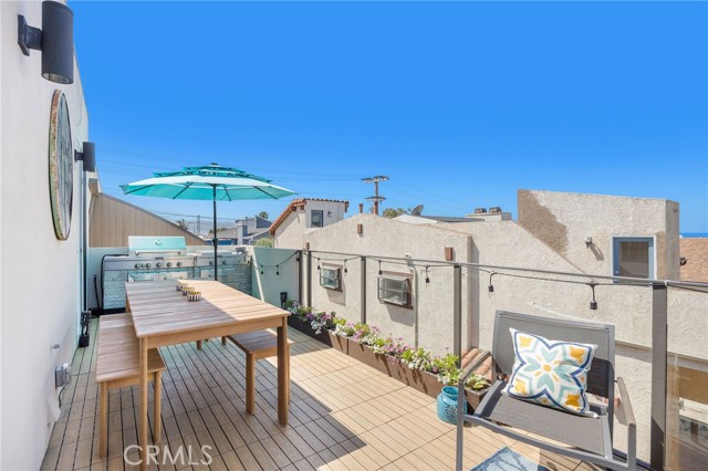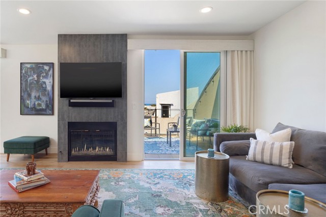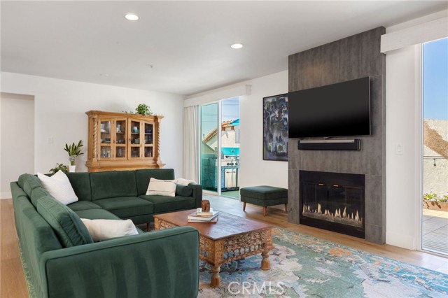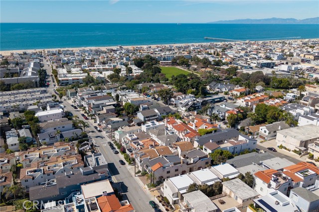 Turnkey coastal townhouse living in a prime Hermosa Beach location - just up from the sand and one block to the Greenbelt. This 3-bedroom, 2.5-bath home offers 2,075 square feet with an open great-room layout, ocean views, and meaningful capital improvements already completed, including a new roof, new deck, hardwood floors, new gas fireplace, fresh paint throughout, and all systems thoughtfully updated. The top level is bright and open, with living, dining, and kitchen spaces that flow naturally through to the outdoor space. Dual sliding doors open to a spacious full property width terrace - ideal for morning coffee, working-from-home afternoons, or hosting friends for sunset evenings with a glass of wine. The kitchen features Cambria quartz countertops and striking cobalt blue Viking appliances, including a 6-burner range, all positioned to stay connected to the main living area and host all the parties. Downstairs, the primary suite opens to a private patio and includes a walk-in closet and a well appointed spa-like bath with dual vanities, soaking tub, and walk-in shower. Two additional bedrooms and a sleek updated bathroom complete the level. Parking and storage set this property apart. In addition to the two-car garage with storage closets, there is an attached and secured carport - great for a golf cart, e-bikes and beach gear. The driveway comfortably fits two additional cars due to the oversized lot, offering parking for up to five vehicles—an uncommon advantage this close to the beach. Located near Pier Avenue, the Strand, and neighborhood cafés and restaurants, this home offers the convenience and lifestyle that define the best of Hermosa Beach living.