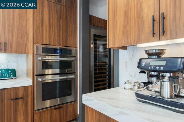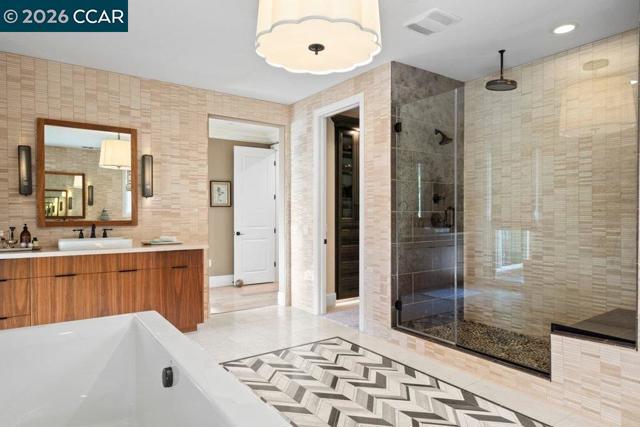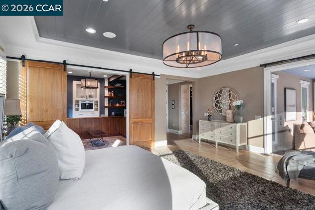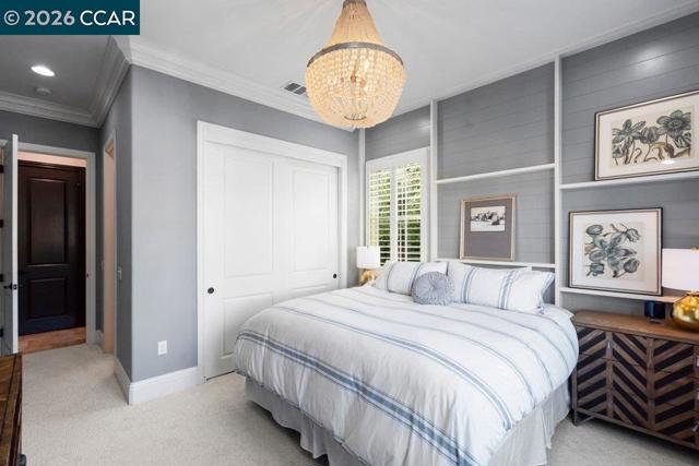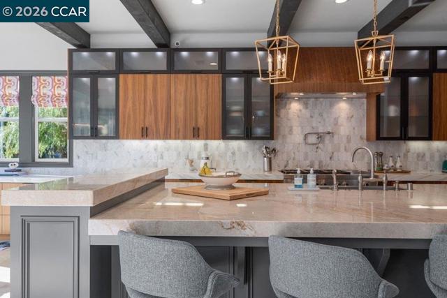 Former Toll Brothers Seabrook Tuscan model home on a premium court lot in Avery at Alamo Creek featuring over $750K in designer upgrades and custom finishes and beautifully integrated indoor outdoor living. Approx. 4,215± SF with 5 BR, 5 BA, and 1 HB, including a main-level bedroom suite. Upgraded cabinetry, custom built-ins, crown molding, and solid wood stair treads throughout. Chef’s kitchen with Jenn Air Pro appliances, paneled built-in refrigerator, dual paneled dishwashers, Sub-Zero wine unit, and beverage center. Accordion glass walls from the family and dining rooms open to a covered California room with a fireplace, heaters, and a built-in four-tap beer keg system with keg storage. Resort-style backyard features a custom pool with a Baja shelf, an outdoor fireplace, and an engineered hanging entertaining table. The primary suite includes a private heated deck and a retreat lounge with custom cabinetry, a Jenn-Air built-in coffee maker, and a wine refrigerator. Close to the Alamo Creek Community Center, clubhouse, parks and highly regarded San Ramon Valley schools, and just minutes from Blackhawk Country Club. Seller’s golf membership may be available, subject to club approval. Shown by private appointment only.