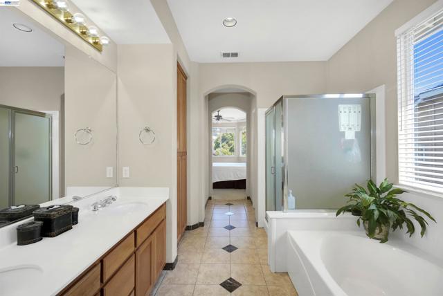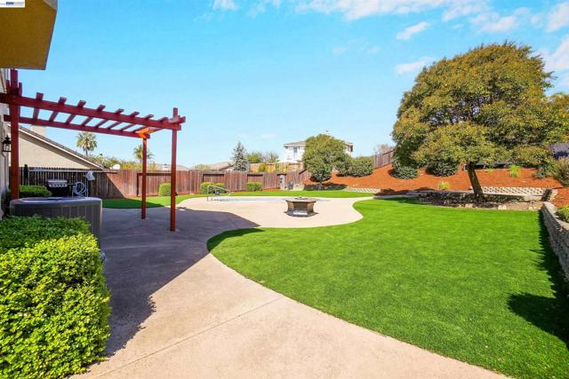 Located in the highly desirable 5 Canyons Neighborhood, this "original owner" home sits on a larger 11,315 sq ft lot and boasts an incredible low-maintenance backyard featuring extensive hardscaping, abundant Synthetic Turf Grass, and a fiber glass in ground swimming pool that will make your home the envy of friends and family. Unglazed flat-plate type solar pool heating panels keep the pool comfortable all summer! Inside, the kitchen offers ample oak cabinetry, crown molding, and high-end appliances. Desirable split level plan has a natural flow to the upstairs or downstairs. Upstairs you'll enjoy the living and dining room areas, the home office, a 1/2 bath, and the primary suite with ensuite bathroom. Downstairs you have a family room with access to the backyard, another primary suite with ensuite bathroom, 2 more bedrooms and another full bath. New HVAC system throughout the home. Five Canyons location offers access to multiple parks, Highways, BART, nearby medical services, and convenient shopping. Only one question here... which family will be enjoying this summer's barbecues while living in this home? This same model (The Norris) sold last year for $1,888,444 with a 9,766 sq ft lot and no swimming pool!!! (See MLS #41099597...5839 Gold Creek Drive).