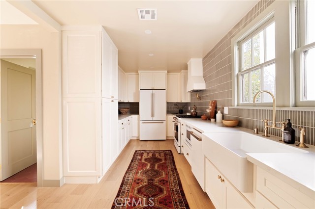 Every so often you step into a home so special that it speaks to your heart the moment you enter & instantly feels like home. Get ready to fall in love with 507 S Norton Ave! Circa 1925, this romantic English Tudor beauty sits on a picturesque street surrounded by other stunning historic homes & estates in LA's highly sought after Windsor Square neighborhood. Charming architectural details blend effortlessly with exquisite modern craftsmanship. Boasting 3 bed 2.5 bath plus a bright sun porch that doubles as a potential office. Everything has been lovingly restored & brought back to life w/ innovative design moments that pay thoughtful tribute to the era in which it was first built. Upon entering the living room you'll be met with classic built-in shelving, a cozy fireplace, & dramatic wood beam accents. French doors off the living room open to a light-filled enclosed sun porch with a skylight, perfect for a home office or creative space. The grand formal dining room is perfectly appointed & seamlessly leads to a custom designed kitchen that leaves nothing to be desired & is outfitted with custom cabinetry, handcrafted tile details, & high-end appliances. The finished basement offers a perfect setting for a wine cellar / tasting room / listening lounge or whatever your craft is! All three bedrooms are located upstairs including a dreamy primary suite with a walk-in closet & an ensuite bath that will become your new happy place featuring a gorgeous soaking tub, glass-enclosed shower & custom tile work / niches. Along with two well-proportioned upper bedrooms, a hall bath, & an array of original built-ins, linen cabinet & a sweet built-in desk area (perfect for a homework or zoom station). This property is also unique in that it has a ton of storage! The entire home emits a tranquil / calming energy with a soothing color palette & elegant design moments. Enjoy the peace of mind of totally updated systems without sacrificing emotion evoking beauty...It's a truly lovely marriage of vintage beauty & easy functionality. The fully fenced / low maintenance backyard is a tranquil sanctuary that offers mature greenery & a perfect opportunity for outdoor dining, gardening & play! All, Ideally located in one of LA's best & most central locations just moments from the rich culture & incredible pockets of nearby Hancock Park, Mid-City, Larchmont, Mid Wilshire & Koreatown, not to mention sought after schools! This one is a special find.