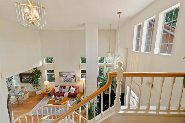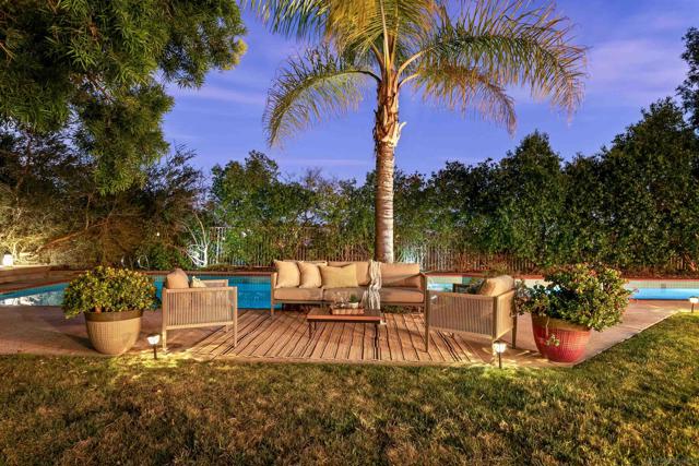 Nestled on an expansive corner lot in Scripps Ranch, this prestigious residence offers elegance, comfort, and architectural significance inside and out. The showcase resort-style backyard features a 75-ft Olympic-length heated pool, surrounded by Saltillo-tiled patios and multiple outdoor areas with lush landscaping, creating an ideal setting for both grand gatherings and intimate evenings framed by mature trees that provide exceptional privacy. Inside, soaring ceilings, stacked windows, and four sets of French doors fill the home with natural light, creating seamless indoor-outdoor living. The chef’s kitchen includes refaced cabinetry, new appliances, and a cozy eat-in nook. The flexible floor plan includes a lower-level bedroom with a full bath and private patio, perfect for guests, multigenerational living, or a home office. Details include solid oak hardwood floors, marble tile, new carpeting, custom built-ins, two fireplaces, and recessed lighting. The primary suite features dual walk-in closets, a spa-like ensuite with a separate soaking tub, and an outdoor balcony. Additional features include a three-car garage with epoxy floors, built-ins and custom stand-up attic storage, upgraded HVAC, a new water heater, a camera security system, and a separate laundry room. With no rear neighbors and only one side neighbor, this property offers privacy while being close to Lake Miramar, top-rated schools, and parks, truly capturing the Scripps Ranch lifestyle.