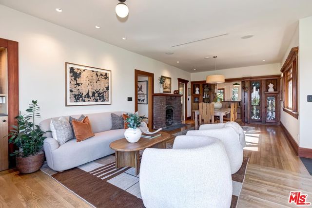 Welcome to 1815 Park Drive, a custom-updated 1914 Craftsman in Elysian Heights, directly across from the hiking trails of Elysian Park and overlooking Los Angeles. Layered views stretch from Century City to the Pacific Ocean, with sweeping sightlines of the Griffith Observatory, the Hollywood Sign, and glittering city lights, creating a true private sanctuary with a front-row seat to the skyline. Thoughtfully updated while honoring its original character, the home blends warm wood floors and timeless architectural charm with discreet modern upgrades designed for elevated everyday living. The layout offers an open flow from the kitchen to the dining and living areas, creating natural connections among spaces while preserving the warmth and character of a classic Craftsman. Two fireplaces one original wood-burning and one gas anchor the living spaces, complemented by new and original built-ins. The kitchen integrates seamlessly with its surroundings, featuring an Invisacook induction surface built directly into the countertop, an appliance garage with plumbed coffee system, and refined details such as power-assisted bump-to-open cabinetry. Smart home systems control outdoor lighting, fountain features, whole-house sound indoors and out, and a suite of water- and energy-saving features. The layout includes three bedrooms and three baths, with two potential primary suites plus a separate, private, air-conditioned studio. The lower level can be a primary suite, media room, or office. Upstairs, a full suite with ensuite bath provides flexibility for hosting without sacrificing privacy. Clean lines, generous closets, and thoughtful layouts complement the home's overall warmth and character. A full-height basement provides generous storage and workspace. Terraced outdoor spaces unfold across multiple levels, creating a true indoor-outdoor lifestyle. Begin your mornings with coffee on the upper deck as the city comes to life below. Spend afternoons enjoying the pool and hot tub, rinse off by the outdoor shower while listening to the peaceful sounds of the nearby fountain, and unwind around the plumbed outdoor firepit as the skyline glows and the Observatory lights the hillside. Climate-conscious touches such as an integrated outdoor heat lamp and motorized awning extend usability throughout the seasons, while lush landscaping and intentional design offer privacy and serenity at every turn. Sustainability and efficiency are thoughtfully incorporated throughout, including a high-efficiency heat pump, whole-house attic fan, owned and battery-ready rooftop solar, brand new energy-efficient windows, a 1,100-gallon stormwater retention system, climate-activated irrigation, and greywater recycling irrigating the lush backyard. Rich in history yet elegantly reimagined for modern living, this Echo Park Craftsman offers the rare balance of character, technology, and iconic Los Angeles views, just moments from nature trails and the neighborhood's vibrant cafes, restaurants, and culture.