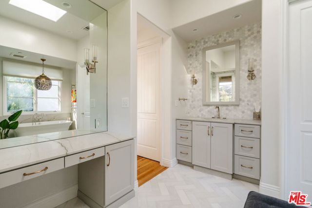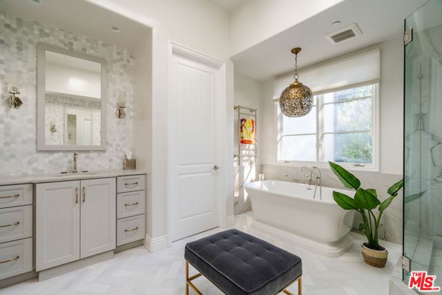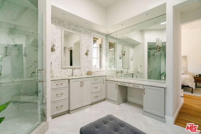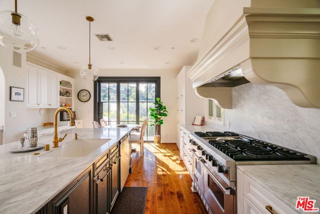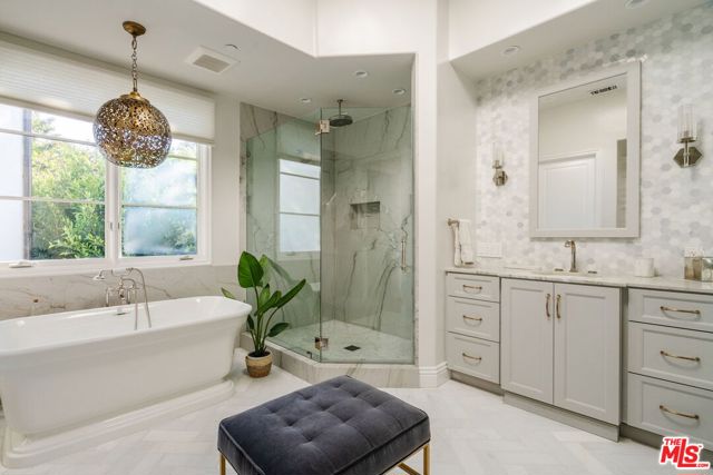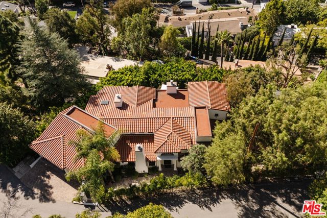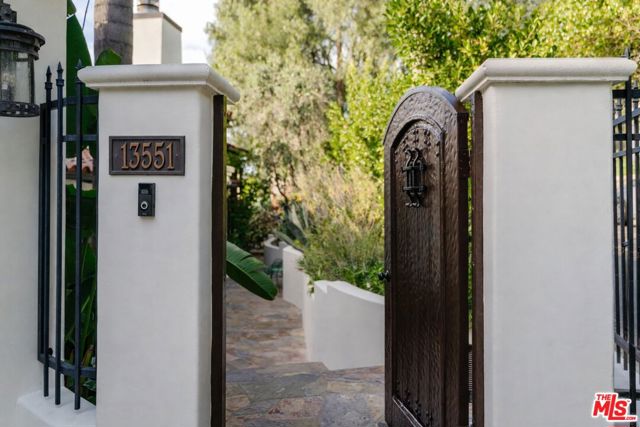 Welcome to 13551 Cheltenham Drive. Inspired by a refined Ojai Spanish aesthetic, this custom-built 2003 residence blends timeless elegance with white stucco walls, a red-clay tile roof, wrought-iron detailing, and graceful arched doorways, all bathed in extraordinary natural light. Spanning 3,582 square feet, the 4-bedroom, 4-bath home also offers approximately 700 square feet of additional storage and an expansive three-car garage with direct access, set against sweeping valley views with exceptional privacy. An immediate sense of calm greets you upon entering the grand great room, where soaring ceilings, exposed wood beams, and an open-concept design seamlessly connect the living spaces. The thoughtfully updated kitchen flows effortlessly into the dining area and a charming library nook, creating an inviting atmosphere for both everyday living and entertaining. Recent kitchen and bathroom renovations introduce refined finishes throughout, highlighted by a brand-new primary bathroom suite and an exceptional walk-in closet designed as a true retreat. Indoor-outdoor living unfolds with ease, as patios open to serene outdoor spaces complete with a hot tub and sauna perfect for relaxing while taking in the tranquil surroundings. A rare offering that artfully combines architectural character, modern enhancements, breathtaking views, and complete privacy in the heart of Sherman Oaks.