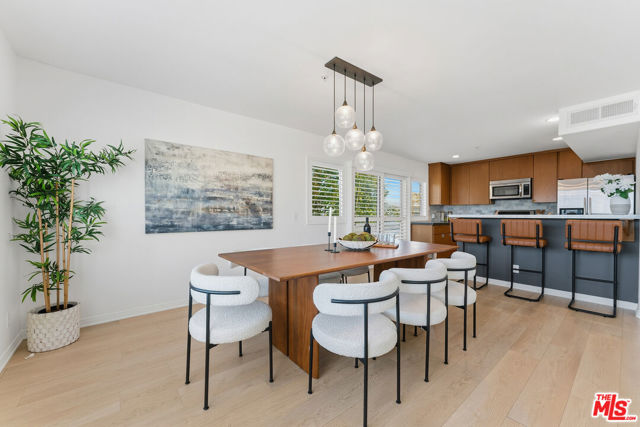 This is the one you've been waiting for. Top-floor, corner 3BR + loft / 2.5BA penthouse offering 2,264 sq. ft. in prime Santa Monicaa true single-family home alternative. Bright and expansive, this three-level residence is filled with natural light from floor-to-ceiling windows and features wide-plank flooring throughout. The main level includes a spacious living room with a wood-burning fireplace, dining area, powder room, private balcony, and an open-concept kitchen with contemporary wood cabinetry, quartz countertops, and KitchenAid and Bosch appliances.Downstairs, you'll find the primary suite, two additional bedrooms, a hall bath with double sinks, and in-unit laundry with a 5.2 cu. ft. LG washer and dryer. The upper-level loft sits above neighboring buildings and opens to multiple outdoor spaces with treetop and ocean viewsideal for a home office, playroom, or entertainer's retreat. Additional highlights include a newer HVAC system, two side-by-side parking spaces in a gated, covered garage with EV charging, and elevator access. Situated in an intimate six-unit building surrounded by mature hedges, this home offers privacy and tranquility just moments from Douglas Park, Montana Avenue, Wilshire Boulevard, the Third Street Promenade, and the beach. Located within the award-winning Santa Monica school district. A rare opportunity not to be missed!