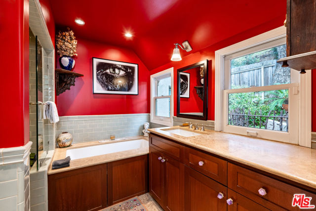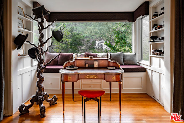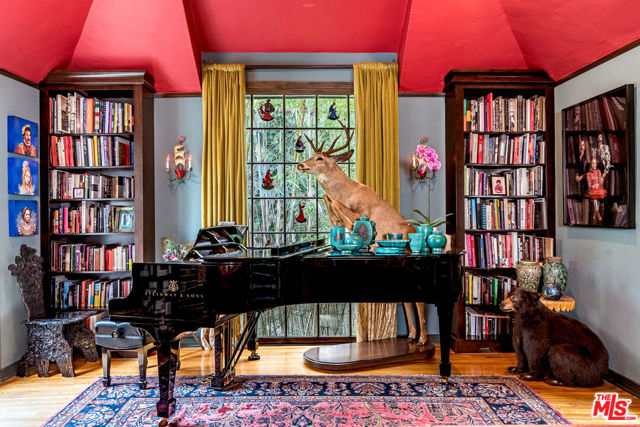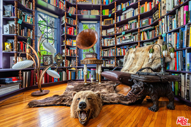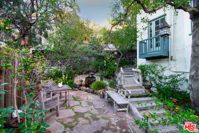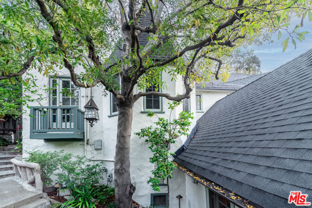 Standing guard over a private enclave of Mt Olympus, this 1926 Spanish storybook should best be described as a romantic love affair with life. Born in an era when silents were turning into talkies, this is the home that will write your next chapter and allow your inspiration to flow. Rich with rockstar history and filled with classical elements like wood-beamed cathedral ceilings, stained glass windows, a mantled fireplace, a fabulous octagon shaped library, lush greenery yards and outdoor dining areas with balconies on every level of the house. The kitchen, made to inspire your culinary efforts, connects to a formal dining room with an ambiance to entertain, fulfilling every expectation of a perfect night at home with friends. Cross the lovers bridge and you know, you've found your place to come home to.