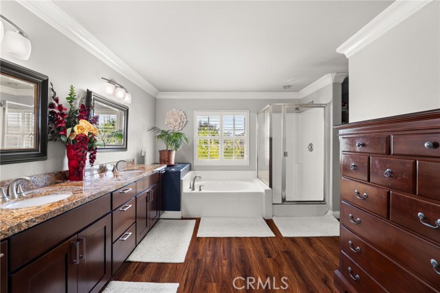 This is a WONDERFUL TWO Story Home in the Heart of Eastvale with Gated RV Parking, EXTRA Large Backyard and Minutes to ALL Amenities!! LOW TAXES and NO HOA Fees * * Enjoy this SPACIOUS Floor-Plan offering 2886sqft with 4 LARGE Bedrooms, GIANT Upstairs BONUS ROOM and 3.5 Bathrooms * * This MODEL has TWO PRIMARY BEDROOMS (1 Upstairs and 1 Downstairs) * * Gourmet ISLAND Kitchen with GRANITE SLAB Counters & Back-Splash, Breakfast Counter for the Kids, STAINLESS STEEL Appliance Package, Beautiful Tiled Flooring and Breakfast Nook to Enjoy Your Morning Coffee * * Wonderful Family Room with Fireplace and Media Niche * * Separate Formal Living Room and Formal Dining Room is PERFECT for FAMILY GATHERINGS * * EXTRA LARGE BACKYARD is Perfect for ENTERTAINING with Covered Patio, BBQ Island, Surrounded with BLOCK WALLS and PLENTY of Grass for the Kids to PLAY or add Your CUSTOM POOL * * UPGRADED Throughout with PLANTATION SHUTTERS, Laminate Wood Floors & 20" Tiled Flooring Throughout, Double Door Entry, Crown Molding, Ceiling Fans, Granite Counters, Recessed Lighting, DUAL AC Units, Mirrored Wardrobes, Two-Toned Paint, SOLAR PACKAGE and MUCH MORE * * SPACIOUS Primary Bedroom with Beautiful Laminate Flooring and HIS & HER Closets - AND - Primary Bathroom with His & Her Sinks, GRANITE Counters, Walk-In Shower and Relaxing Garden Tub * * GIANT UPSTAIRS Bonus Room is the PERFECT TEEN ROOM * * TWO Additional Nicely Appointed Upstairs Bedrooms * * UPSTAIRS Laundry Room with Built-In Cabinets & Sink * * Wonderful Curb Appeal and Two Car Attached Garage with GATED RV PARKING for your Boat/RV/Trailer * * Terrific Location is Close to Schools, Shopping, Parks, Golf, Dining/Restaurants, SilverLakes Equestrian Center and EZ FREEWAY Access!!