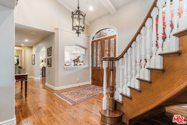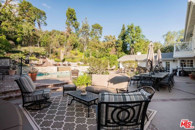 Situated in the guard gated, equestrian community of Hidden Hills, this immaculate estates sits on the coveted Long Valley lot that spans over one acre of fully usable land with massive frontage and wonderful curb appeal. The home features an oversized living room, formal dining room, gourmet Chef's kitchen with dual center islands that opens to a spacious family room and multiple outdoor dining and entertainment spaces. There are three spacious bedrooms and baths on the ground floor. The upstairs showcases the private primary suite with his and hers baths, walk-in closets, an inviting balcony that looks upon the expansive grounds, a connecting room that can double as a nursery or office / study, and two additional bedrooms and baths . The home features hardwood floors, wood beam ceilings, upgraded bathrooms, new carpets, custom kitchen with center island and sink and an additional island housing a hibachi grill and dining counter all in one, ideal living room and family room with fireplaces, multiple sitting areas, a private game room with card table and pool table ,and a thoughtful family friendly floor plan. All this leads to an oasis style backyard with sparkling pool, elevated spa, a full outdoor kitchen, multiple sitting areas, an outdoor fireplace, a putting green, and a separate pool house. Grand stairs lead up to a huge flat, park like level grassy yard where the flowers are in full bloom. This home has been meticulously maintained and cared for both inside and out. It is complete with a four car garage and circular drive. Don't miss this home. This is the true essence of the Hidden Hills lifestyle.