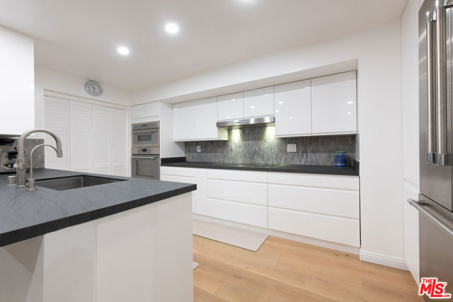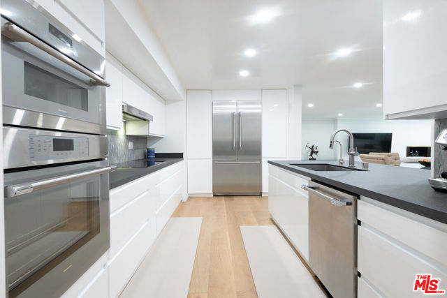 Spacious 2-bedroom, 2-bath residence thoughtfully remodeled from top to bottom with exceptional attention to detail and no expense spared. The brand-new kitchen showcases striking quartzite countertops, custom lacquer cabinetry, top-of-the-line stainless steel appliances, and a separate laundry/storage room. The kitchen flows seamlessly into a generous dining area and expansive living room featuring a gas fireplace, creating an ideal setting for both everyday living and entertaining. Sliding doors open to an enclosed patio, which is also accessible from the guest bedroomperfect for indoor-outdoor flexibility. The oversized primary suite offers a well-appointed bath with dual vanities, a walk-in closet, a linen closet, and a private balcony retreat. Additional highlights include gated and secure underground parking with two side-by-side spaces, abundant storage, and the rare benefit of no unit above for enhanced privacy and quiet enjoyment. Ideally located just blocks from award-winning Fairburn Avenue Elementary School, a Blue Ribbonrecognized primary school, and only minutes from UCLA, Brentwood, Beverly Hills, and the Century City Mall, with premier shopping, dining, and entertainment.