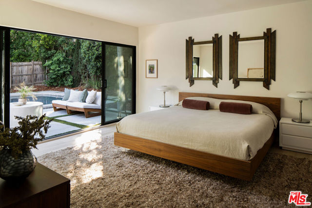 Welcome to this newly reimagined California Mid-Century Modern residence offering an exquisite blend of architectural nostalgia and contemporary sophistication. The home's traditional layout elegantly wraps around a sprawling central patio, creating a seamless indoor-outdoor sanctuary designed for entertaining and lounging. At the center of this private oasis lies a newly remodeled, nine-foot deep swimming pool, perfectly framed by picturesque windows and sliding glass doors that invite natural light into every corner of the open-concept interior. The home has a refined warmth aesthetic, characterized by neutral flooring, earthy granite countertops, and curated MCM-style lighting. Beyond the three spacious bedrooms, a versatile bonus space offers the flexibility required for modern living: whether a professional home office, media room, or a private guest suite. The primary retreat features a spa-inspired bathroom equipped with a Jacuzzi soaking tub, Toto bidet, and sleek Robern Uplift medicine cabinets, all with direct sliding-door access to the sparkling pool. Beyond its designer finishes, the home is anchored by a suite of high-performance infrastructure designed for the modern era. Sustainability and wellness are seamlessly integrated through solar panels, dedicated EV charging station, tankless water heater, ecobee smart home thermostat and comprehensive entire-home water filtration system. With the added security of private gated access and radon mitigation system, every detail has been meticulously considered. Nestled in the heart of Sherman Oaks village, just blocks from the vibrant boutiques and celebrated dining which run along the famous Ventura Boulevard, schedule showings today as this home will not last!