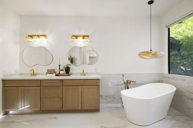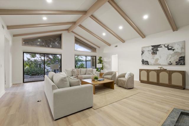 Completely renovated in 2026, this spacious residence offers 4 bedrooms plus an office and 3.5 bathrooms, blending refined design with timeless architectural character. Soaring vaulted ceilings and expansive windows fill the home with natural light, enhancing the open and inviting living spaces. Elegant finishes, luxury flooring, and a statement fireplace create a warm yet sophisticated environment ideal for both everyday living and entertaining. The entire upper level is the primary suite, a private retreat, featuring a balcony overlooking the golf course — the perfect place to unwind with a glass of wine while enjoying sunset views and even fireworks on the Fourth of July. Three additional generously sized bedrooms downstairs provide flexible space for work, guests, or growing households. Designed for seamless indoor-outdoor living, the backyard offers a resort-style setting with a sparkling pool and spa set against the tranquil golf course backdrop. The outdoor entertaining area is complete with a built-in kitchen including BBQ and bar seating, plus an inviting outdoor fireplace, creating an ideal setting for gatherings year-round. Set on a generous lot with potential for expansion or an ADU, this exceptional property combines space, privacy, and lifestyle. Located just minutes from top-rated schools, beaches, shopping, dining, and the world-class Omni La Costa Resort & Spa, this is a rare opportunity to own a turnkey golf course home in one of North County’s most desirable communities.