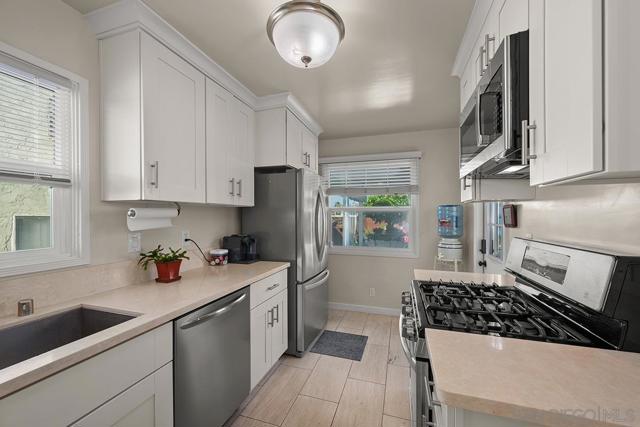 Beautifully updated single-story home in La Mesa offering 4 bedrooms, 3 baths, and a large 6,300 sq ft level lot with a large backyard. This home features two primary bedrooms, a formal dining area, and a stylish kitchen with shaker cabinetry, quartz countertops, and stainless-steel appliances. An entertainer’s backyard complete with a spacious covered patio, gas fire pit, eco-friendly turf, and new tile. This property offers an oversized detached one-car garage with convenient alley access. Modern upgrades include new roofing, paid solar with EV charger, tankless water heater, updated windows, and HVAC. Ideally situated near shopping, dining, SDSU, and the Kroc Center. This home offers the perfect blend of comfort and convenience.