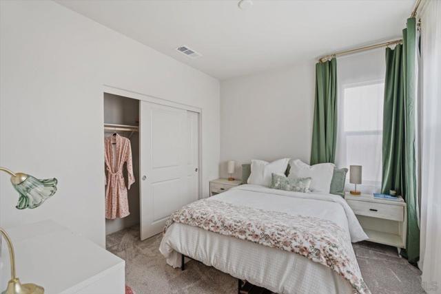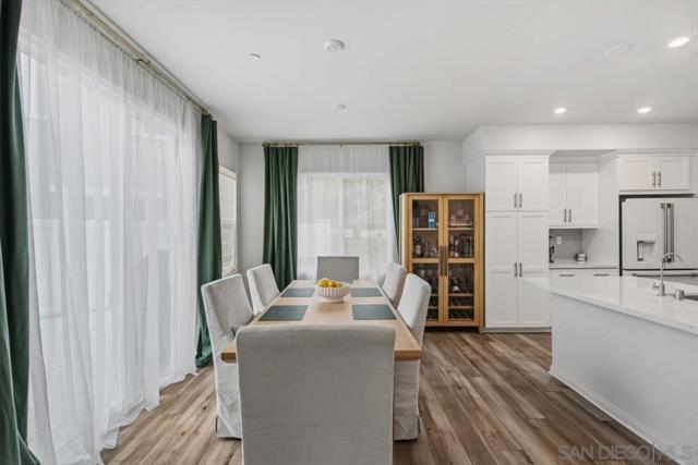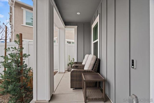 Beautifully upgraded home featuring a modern kitchen with quartz countertops, full backsplash, breakfast bar, walk-in pantry, and shaker-style white cabinets with brushed nickel hardware, luxury vinyl plank flooring, premium Cafe kitchen appliances including a dual oven and enhanced electrical. The charming farmhouse-style exterior offers great curb appeal. Enjoy a 2-car staggered garage plus driveway parking, conduit for a future EV charger, and an energy-efficient tankless water heater. Smart home features consist of Qolsys IQ panel, Ecobee thermostat, Eero router entry and a Schlage keyless. HOA maintains front yards, and NO Mello-Roos adds exceptional value.
