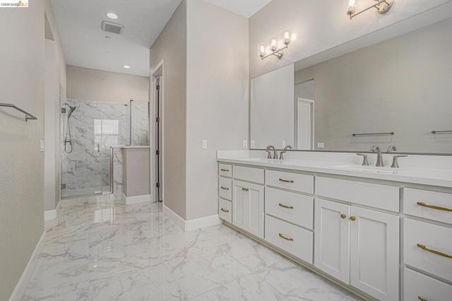 Set on a generous lot, this Oakley gem blends thoughtful upgrades with everyday comfort. Step inside to an open, light-filled layout enhanced by modern finishes and designer touches throughout. The gourmet kitchen is a true centerpiece, showcasing white shaker cabinets with brushed gold hardware, quartz countertops, an upgraded backsplash, and an oversized island that serves as the heart of the home. Upgraded tile flooring flows seamlessly through the main living areas, creating a stylish, durable, and low-maintenance design. The primary suite is a private retreat featuring a walk-in closet and a spa-inspired bathroom with a free-standing soaking tub and beautifully upgraded tile. A junior suite with its own private bath is perfect for extended family, guests, or older children seeking their own space, while additional bedrooms offer flexibility for family or a home office. Out back, enjoy a covered patio for shaded relaxation and an extended concrete patio that expands your options for entertaining. The backyard is a blank canvas with endless possibilities complete with RV/boat storage ready for you to design your dream outdoor space. And with the added benefit of owned solar, this home delivers both lifestyle and efficiency.