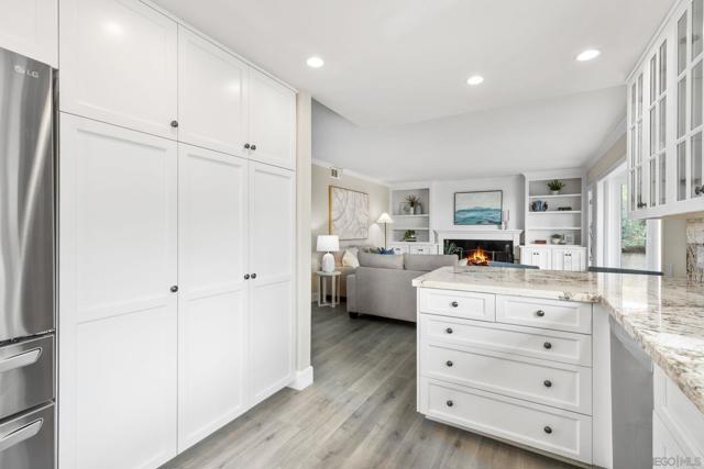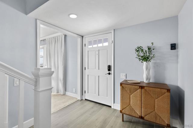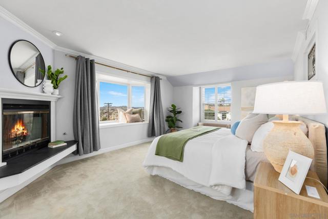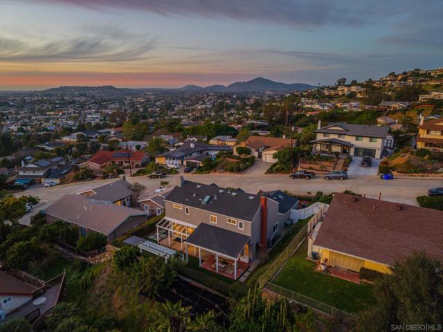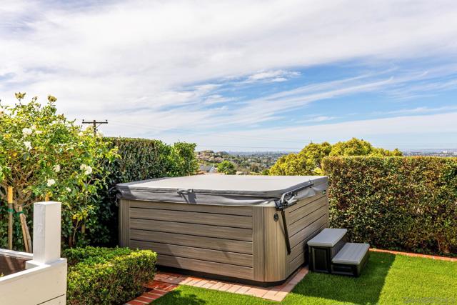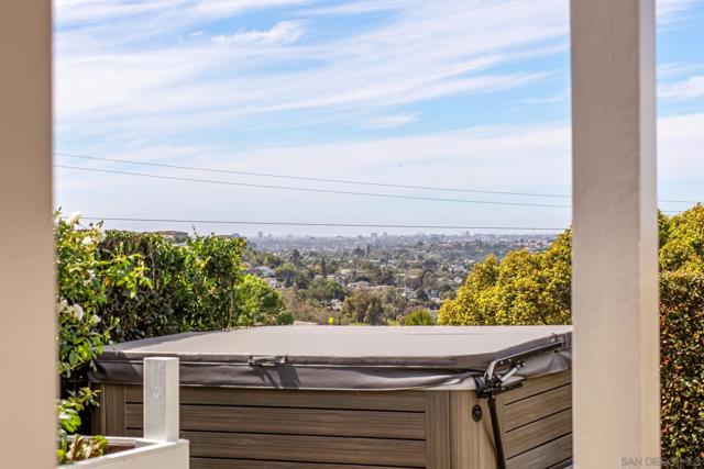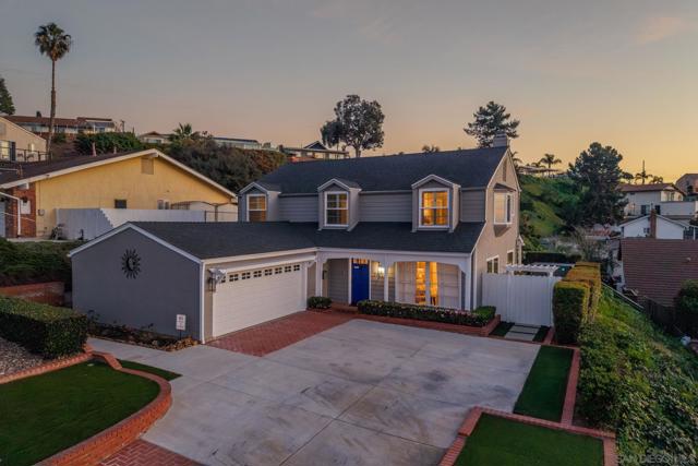 In the hills of La Mesa, modern country chic meets everyday luxury in this stunning 4-bedroom, 4-bathroom home just 15 minutes to Downtown San Diego and close to highly rated Helix High School. With sweeping views of downtown and the ocean, this light-filled residence offers the perfect blend of privacy, charm, and functional living. Step inside to soaring floor-to-ceiling windows that flood the home with natural light, highlighting luxury vinyl plank flooring, crown molding, and a custom wood staircase that makes a striking first impression. The thoughtfully updated kitchen features new Bosch appliances, a new ThinQ refrigerator, a large pantry, and a charming bay window that overlooks the garden, creating a warm and inviting heart of the home. A custom wine cellar adds a touch of sophistication for entertaining and wine enthusiasts alike. Designed for seamless indoor/outdoor living, the home opens to a beautifully curated backyard retreat. Turf for easy maintenance, brick accents, planter boxes for a farm-to-table lifestyle, and an English garden feel complete with hedges and white roses. Unwind in the private hot tub while taking in the panoramic downtown and ocean views, or entertain effortlessly in this peaceful, view-filled setting designed for year-round enjoyment. The versatile floor plan includes a downstairs bedroom and full bathroom, perfect for multigenerational living, guests, or a private office. Upstairs you’ll find three additional bedrooms, including two spacious primary suites. The main primary retreat offers a cozy fireplace, spa-inspired walk-in shower, generous layout, and breathtaking views. Smart home features throughout enhance comfort, convenience, and energy efficiency. Additional highlights include dual-pane windows, abundant parking out front, and a light and bright interior throughout. This turnkey home combines modern upgrades, timeless character, panoramic views, flexible living space, and indoor/outdoor California living in one exceptional property.