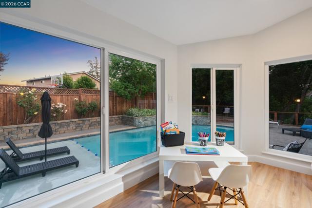 Your private oasis in the desirable Twin Creek neighborhood awaits. Tucked at the end of a sought-after court location, this beautifully maintained home welcomes you with warmth, charm, and timeless appeal from the moment you arrive. Vaulted ceilings create a bright and airy atmosphere, while expansive windows bath the home in abundant natural light. Thoughtfully designed living spaces offer both comfort and elegance, making everyday living and entertaining effortless. Step outside to a truly exceptional backyard retreat. This park-like sanctuary is designed for the ultimate indoor-outdoor lifestyle, featuring a sparkling pool, a putting green, and multiple intimate seating areas that invite relaxation and connection. Whether hosting lively gatherings or enjoying quiet moments, the outdoor spaces offer year-round enjoyment. Imagine peaceful mornings with coffee in the sun-filled breakfast nook, dinners in the dining room, evenings gathered around the fire pit under a canopy of stars, and weekends spent entertaining in your own backyard paradise—all accompanied by the tranquil sounds of nature. More than just a home, this is a lifestyle of comfort and retreat. Don’t miss this rare opportunity to own a slice of paradise in one of the area’s most coveted communities. Welcome home!