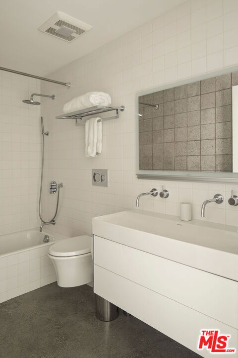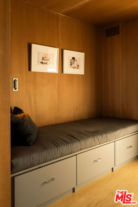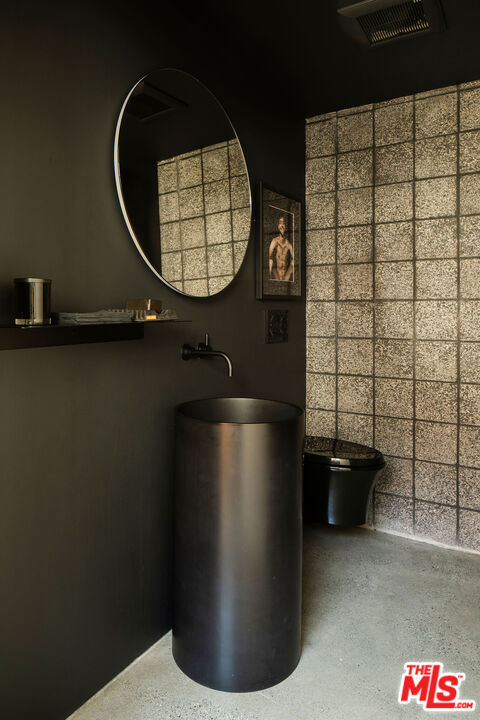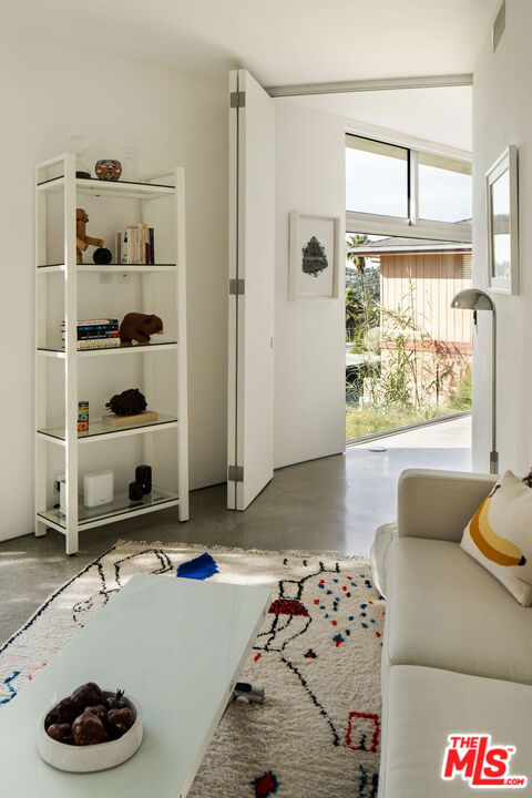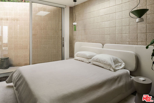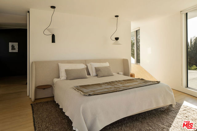 The Sky House is an award-winning architectural statement that dissolves the boundaries between indoors and out, with each level unfolding in its own warm, light-filled rhythm. Designed by the LA-based firm Claret-Cup, the residence fuses the refinement of Palm Springs midcentury modernism with a contemporary emphasis on flexibility, craftsmanship, and spatial invention. The living experience begins the moment you ascend the front steps, where shifting sounds, filtered breezes, and evolving sightlines heighten your senses before delivering you into the expansive courtyard anchored by a magnificent coral tree. Inside, a rich interplay of polished concrete floors, CMU block walls, warm wood accents, and abundant windows allows light and shadow to move fluidly throughout the day. A full wall of retractable and foldable glass dissolves the threshold between the living, dining, and kitchen inside and the courtyard and roof deck outside - creating a true indoor/outdoor connection that transforms the main level into an open, breathable gathering place for celebration and relaxation. Ascending to the upper level, the primary suite reveals itself as a private oasis. Thoughtful window placement captures sweeping views from nearly every angle, allowing the entire suite to feel simultaneously expansive and cocooning. A generous walk-in closet doubles as an intimate retreat, fitted with a built-in daybed perfect for reading, recharging, or drifting into an afternoon nap. Anchoring the spa-like bathroom is a truly unique and stunning walk-in shower made with Accoya wood, creating a natural outdoor feel. The warm wood continues fluidly underfoot and extends outward onto the private balcony where a large soaking bath is positioned perfectly to soak up the views. Descending to the lower level, the home's design ingenuity expresses itself in one of its most distinctive architectural gestures: a custom engineered hatch that transforms with a single motion. When raised, it becomes a refined pony wall. When lowered, it seals the level entirely, allowing this floor to function as a private guest suite with its own sense of refuge and independence. This lower level unfolds into two serene bedrooms and a beautifully integrated kitchenette and living room, each rendered with the same warmth and material clarity found throughout the home. A full wall of glass anchors the space, capturing long views across the landscape while drawing natural light deep into the interior. Whether used as a guest quarter, an extended-stay suite, or a dedicated creative workspace, this level embodies the home's ethos of adaptability: spaces that shift and expand to meet the rhythms of daily life while maintaining a sense of calm, beauty, and intention.