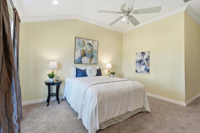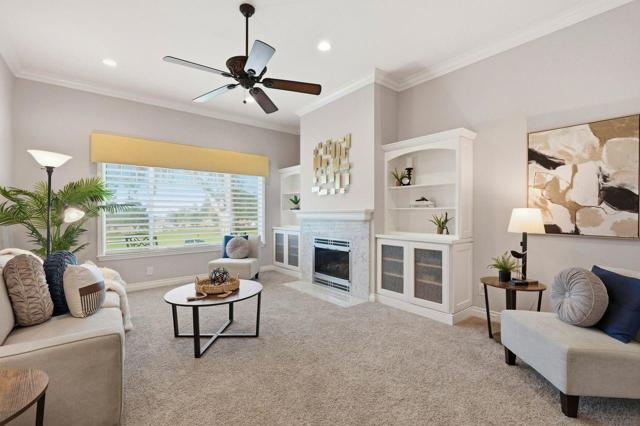 Location Location Location! Welcome to The Villages Golf & Country Club, Silicon Valleys premier gated 55+ active adult community, ideally located in the highly desirable Olivas Village on the golf course. Enjoy peaceful surroundings with minimal traffic, beautiful sunset views, and a tranquil setting. This beautifully updated single level end unit offers approximately 1,675 sq ft and was extensively remodeled in 2013, featuring an updated kitchen with modern cabinetry and appliances, rich wood flooring, built in cabinetry, wide crown moldings & baseboards, and a gas fireplace with marble surround. The spacious living room showcases an oversized picture window with remote controlled blinds, providing abundant natural light and scenic views. Architectural arched openings lead to the kitchen and den, complemented by dual pane windows throughout. Additional highlights include fresh paint, central HVAC, indoor laundry closet, ample storage, and an attached two car garage. Residents enjoy resort style amenities including pools and spas, two golf courses, tennis, pickleball and bocce courts, walking and hiking trails, vibrant social clubs, organized activities, and on site casual and fine dining. 24 hour staffed gated security and more!