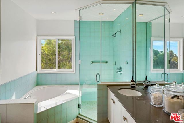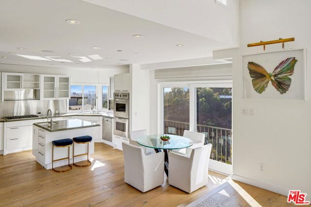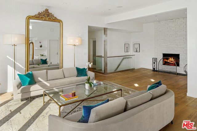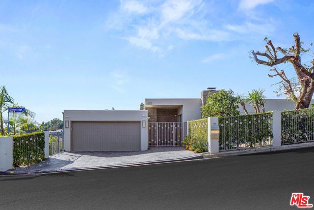 Perched on a scenic hillside in coveted Lower Beverly Hills Post Office, this beautifully renovated four-bedroom contemporary home offers breathtaking panoramic canyon, city, and ocean views just minutes from the heart of Beverly Hills. Designed to maximize natural light and indoor-outdoor living, oversized windows across multiple levels frame stunning vistas and create a bright, airy atmosphere throughout the home. The main level great room features a spacious living area with a gas fireplace and private view balcony, seamlessly flowing into a sunlit dining space and a modern chef's kitchen. The kitchen is outfitted with high-end Viking and Miele stainless steel appliances, granite countertops, and a seated center island, making it ideal for both everyday living and entertaining. The lower level offers an expansive family room with a state-of-the-art home theater system, opening directly to a large outdoor deck with a built-in jacuzzi, ideal for relaxing or hosting gatherings while enjoying the spectacular canyon and sunset views. Three bedrooms are located within the main residence, including a lower level suite with direct access to the deck and a luxurious primary suite complete with a walk-in closet and spa-inspired bathroom featuring a double vanity, soaking tub, and steam shower. A separate guest suite or private office with its own entrance, along with an additional storage room, provides flexible space for guests, work-from-home needs, or creative use. Fully remodeled with modern conveniences, the home includes smart home automation, Nest thermostats, built-in surround sound throughout, and energy-efficient solar panels. An attached two-car garage and spacious driveway present ample off-street parking, adding to the home's functionality. Ideally located just minutes from Rodeo Drive, world-class shopping, fine dining, and top Beverly Hills amenities, 1433 Summitridge Drive offers a rare combination of privacy, luxury, and sweeping views in one of Los Angeles' most desirable neighborhoods.