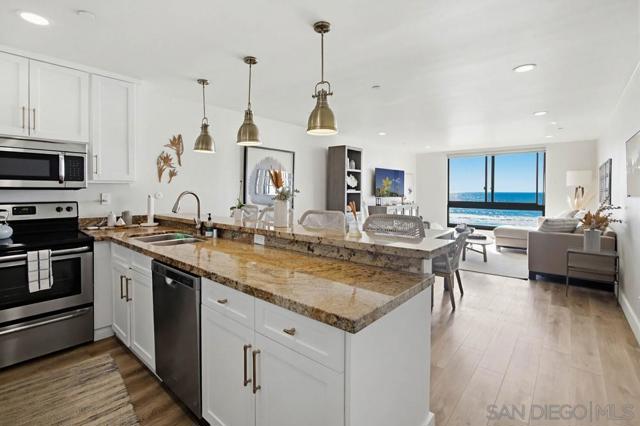 Front-row oceanfront living in the heart of Pacific Beach. This turnkey condo delivers sweeping, unobstructed views of the Pacific directly from your living room and kitchen, so you can watch the waves, sunsets, and surfers without ever leaving home. Sold fully furnished and completely move-in ready, this is the ultimate coastal escape. Simply bring your suitcase and start enjoying the beach lifestyle from day one. The bright, open living space was designed to maximize the ocean views, creating the perfect setting for relaxing, entertaining, or working while overlooking the water. Imagine preparing meals with the ocean just beyond your kitchen window, unwinding in the living room as the sun sets over the horizon, and falling asleep to the sound of the waves. Dedicated parking adds rare convenience in this highly sought-after beachfront location. Step outside and you're just moments from the sand, the boardwalk, and Pacific Beach’s best restaurants, cafés, and shops,making this an ideal full-time residence, vacation home, or investment opportunity.