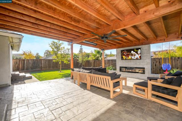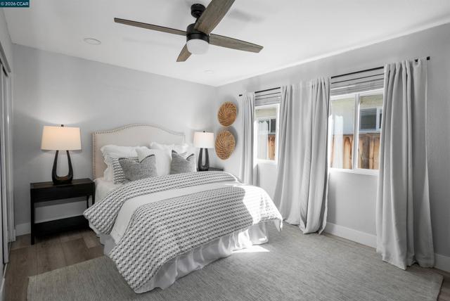 Stylish updates, a backyard built for entertaining, and a quiet end-of-cul-de-sac location come together beautifully in this thoughtfully remodeled 3-bedroom, 2-bathroom home. Inside, the home features a bright and cohesive design with updated flooring and thoughtfully selected finishes throughout. The kitchen stands out with concrete countertops, open shelving, sleek cabinetry, and a large island designed for both everyday living and effortless entertaining. Both bathrooms have been tastefully renovated, including a spacious tile shower in the primary suite. Step outside to a backyard designed for gathering and relaxation. The covered patio with exposed wood beams and fireplace creates a warm outdoor living space overlooking the pool and lawn; perfect for hosting friends, enjoying quiet evenings, or making the most of California’s indoor-outdoor lifestyle. Additional highlights include owned solar, new HVAC and ducting, and convenient access to shopping, dining, and schools, making this move-in ready home a perfect blend of comfort, style, and functionality.