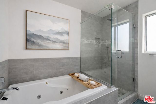 Welcome to this exceptional penthouse nestled in coveted Brentwood, where soaring ceilings, abundant natural light, and thoughtfully designed living spaces create the perfect blend of comfort and style. Spanning 2,201 square feet, this residence offers 3 bedrooms and 3 bathrooms with a versatile layout ideal for modern living. The main living area greets you with dramatic ceiling heights and expansive volume, creating a bright and airy atmosphere that flows effortlessly throughout the home. The primary suite is a true retreat featuring impressive ceiling height, a spacious en-suite bathroom, and a large walk-in closet. A secondary en-suite guest bedroom offers privacy and comfort for visitors, while the third bedroom downstairs provides incredible flexibility as a playroom, guest space, home gym, or private office. Upstairs, a generous loft-style living space, with attached bathroom, opens up endless possibilities for entertaining, relaxing, or hosting movie nights. Just beyond, step out onto a large rooftop deck, the perfect place to enjoy sunset skies, entertain friends, or unwind under the stars. A bright office nook upstairs provides a dedicated workspace filled with natural light and even offers the unique ability to step outside and take calls from your rooftop retreat. Located in one of the most walkable pockets of Brentwood, residents enjoy easy access to the vibrant San Vicente corridor, home to beloved local favorites such as Jon & Vinny's, A.O.C., Katsuya, Coral Tree Cafe, and Kreation Organic. Enjoy morning coffee runs, boutique shopping, and neighborhood strolls just moments from your door, all while being only minutes from the beaches of Santa Monica and the Pacific Ocean. Private EV charging in the garage also allows easy access for todays smart cars. This is Brentwood living at its best: spacious, stylish, walkable, and close to everything the Westside has to offer.