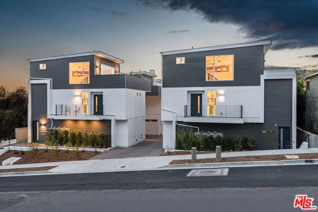 Architecturally striking and bathed in natural light, this 3-bedroom, 3.5-bath single-family home (built in 2019) delivers the very best of Silver Lake living. Enter through a welcoming foyer or directly from the two-car garage complete with EV charger. The first level offers a spacious guest suite with en-suite bath, ideal as a home office or private retreat for visitors. On the second floor, the primary suite impresses with dual walk-in closets featuring custom built-ins and a spa-like bath. A third bedroom also enjoys its own en-suite bath and walk-in closet. A laundry room with a sink is situated perfectly between the bedrooms. The crown jewel of the homes is its top-floor great room, where the kitchen, dining, and living areas open onto a sweeping south- and west-facing deck through an accordion glass wall framing breathtaking sunset views over the Hollywood Hills and city skyline. Designed with a sleek modern aesthetic, smart home technology, and high-end sustainable finishes throughout, this home suits an entertainer or a quiet work from home lifestyle. Natural light floods each floor of the home while preserving a sense of privacy and serenity. Ideally located in the Hyperion Silver Lake community of 8 homes, you are just steps from Sunset Junction and close to area highlights like Erewhon, Courage Bagels, Pine & Crane and La Colombe. Enjoy the best boutiques, bars, and cafes that make Silver Lake one of LA's most celebrated neighborhoods.