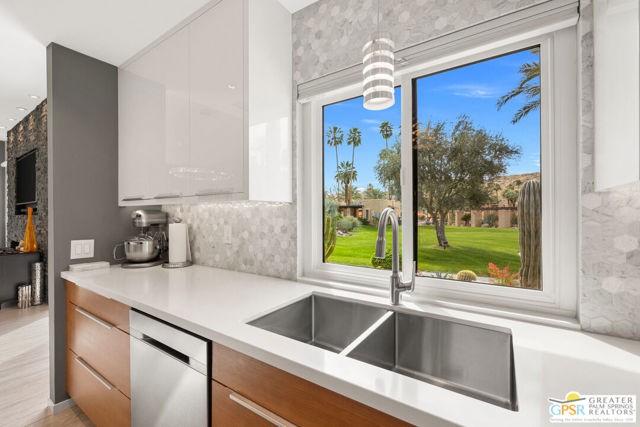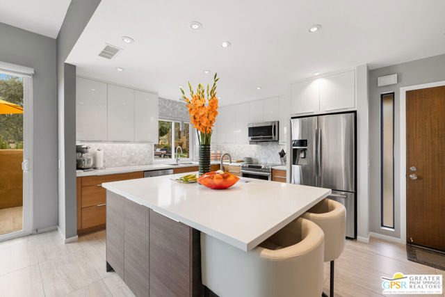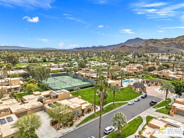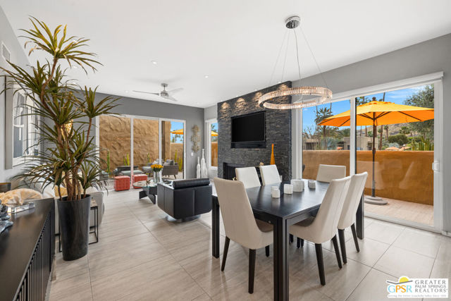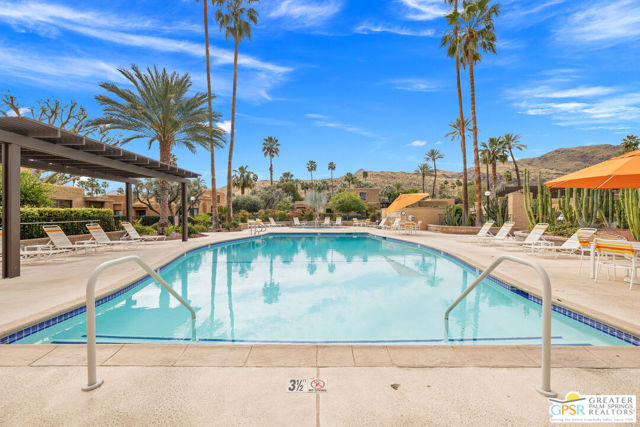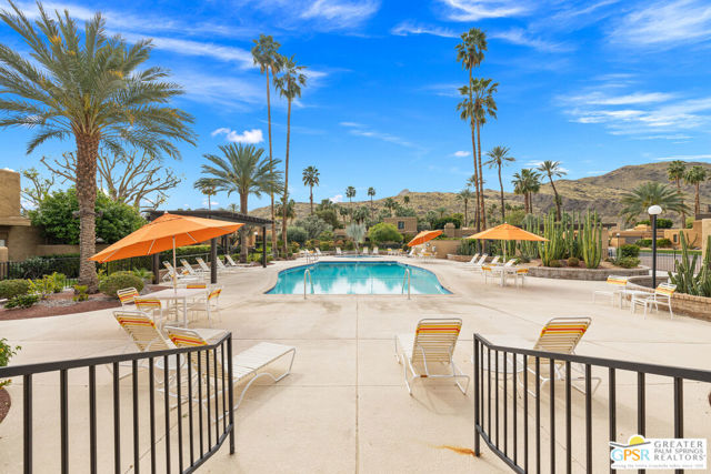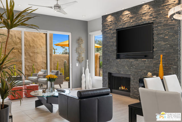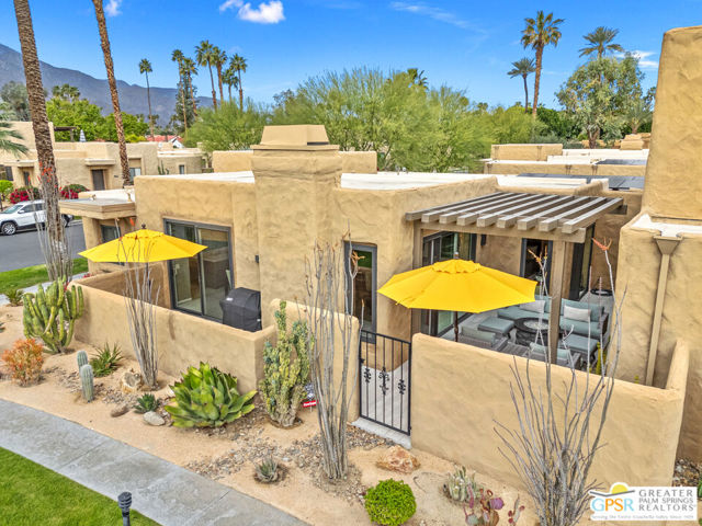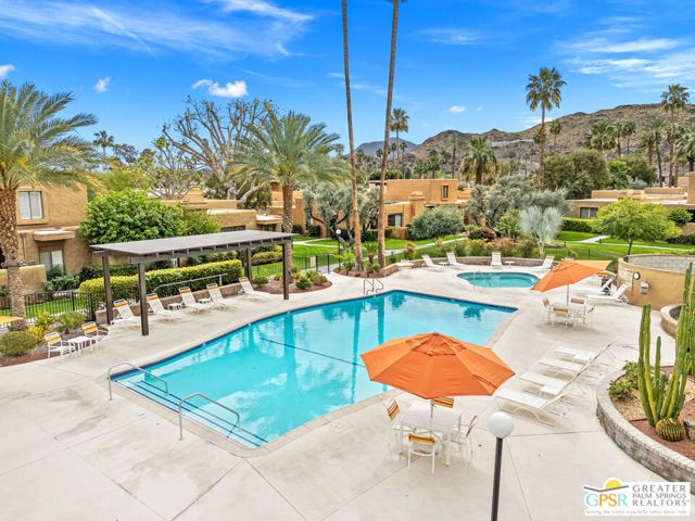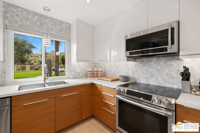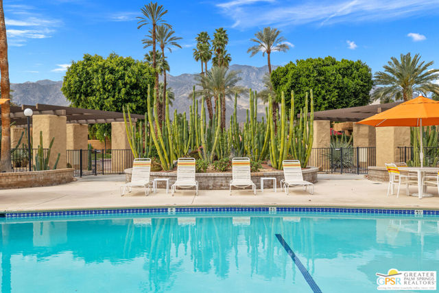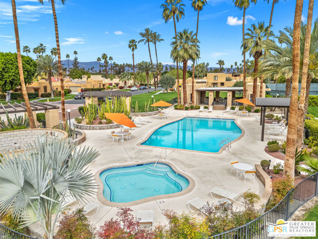 Welcome to Wonderful Waverly Park in South Palm Springs ~ ~ an exceptional Gated Community ~ a unique home offering Southern and Western Mountain views (unlike many homes in Waverly Park). This One Story ~ Two Bedroom ~ Three Bathroom (2 3/4 Shoer Baths + Powder Room) Condominium offers exceptional Southern and Western Mountain Views from its interior park-like location in the complex - Totally and beautifully updated ~ The delight begins as you enter the light-filled Great Room connecting the Living and Dining Areas with the Open Kitchen ~ Ceramic Tile flooring (from Spain) flows seamlessly throughout extending to the private outdoor spaces, creating a spacious natural and cohesive feel ~ The Living and Dining Areas have Glass Sliding Doors opening to the wraparound patio areas ~ The sense of spaciousness seems amazing ~ The Living Room has a Gas Fireplace enhanced with Granite Ledge Stone adding warmth and character ~ Interesting Updated window treatments enhance the home's private relaxed elegance ~ The enviable remodeled kitchen combines style and functionality with Quartz Countertops ~ Oversize Island with Breakfast Bar Seating, extensive cabinetry, Carrera Marble Styled Ceramic Backsplash, stainless steel appliances, and abundant storage. The spacious Primary Bedroom Suite includes a fully remodeled Shower Bath using imported Spanish Porcelainosa Tile from Spain with custom cabinetry, quartz countertops, a frameless glass shower, and designer tile finishes ~ Double Closets Plus ~ The Secondary Bedroom Suite offers a beautifully updated Shower Bath, also using imported Spanish Porcelainosa Tile from Spain with another frameless glass shower, quartz countertops and elegant tile work ~ Additional highlights include direct access to a large two-car garage, newer insulated garage door panels, in-garage laundry with gas or electric dryer hookups, abundant storage, and thoughtful upgrades throughout including a fresh poxy Floor ~ All newer Windows and Sliding Doors ~ Newer roof installed by HOA ~ Newer Water Heater ~ Please note: The only common walls in this unit are the garage walls ~ Situated on fee simple land (you own the land), Waverly Park residents enjoy exceptional community amenities including three pools, three spas, tennis courts, pickleball courts, and beautifully landscaped grounds. HOA dues cover water, trash, roof maintenance, exterior stucco, and common area landscaping. Ideally located just minutes from world-class golf, scenic hiking trails, shopping, and Palm Springs' vibrant dining and entertainment, this home offers the perfect combination of comfort, style, and resort-style desert living. Potos and Video of tis property will be available early next week of 8 March ~ 2026