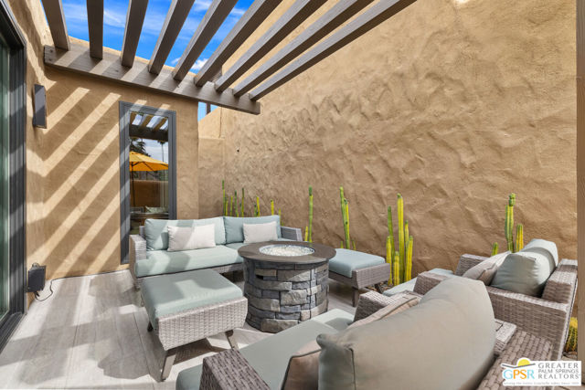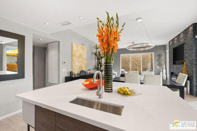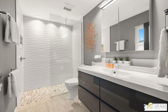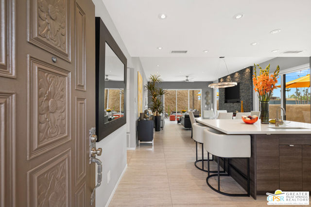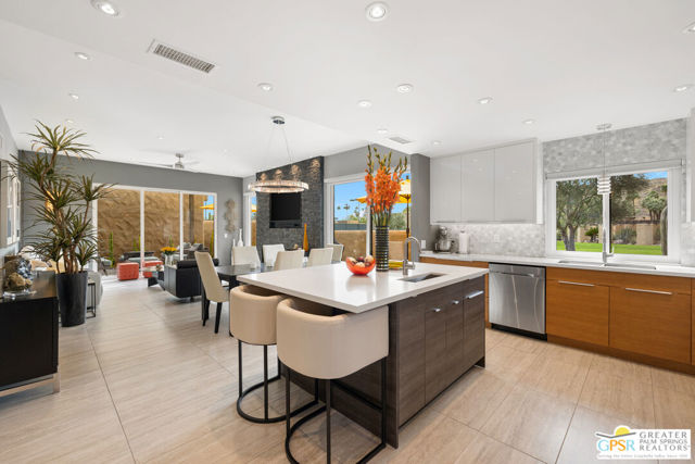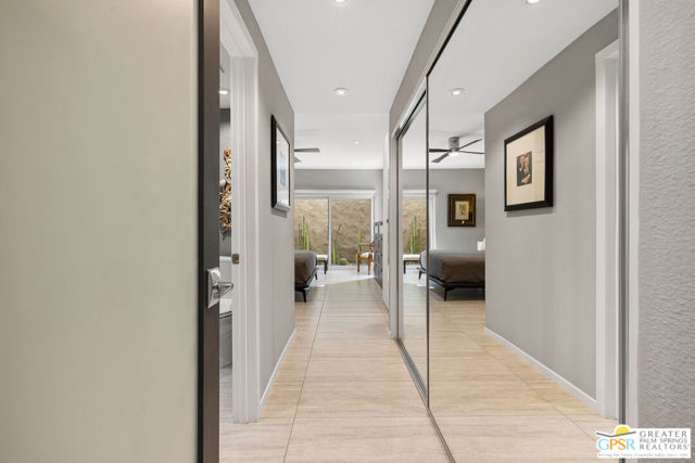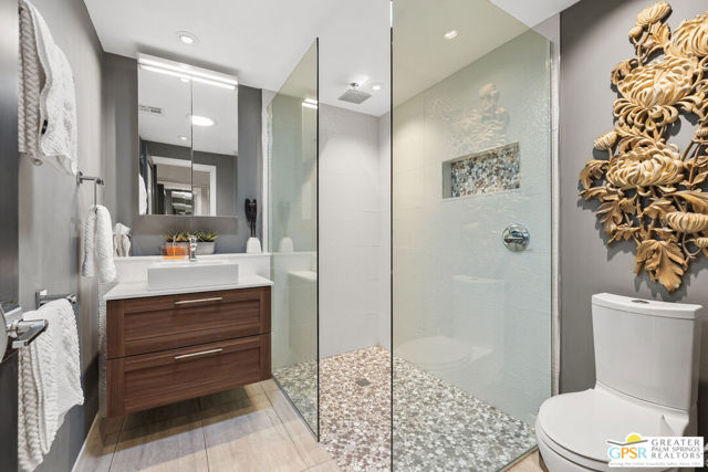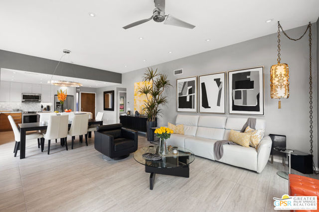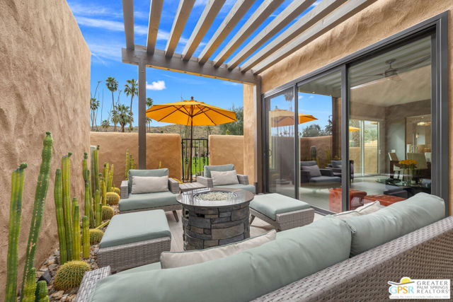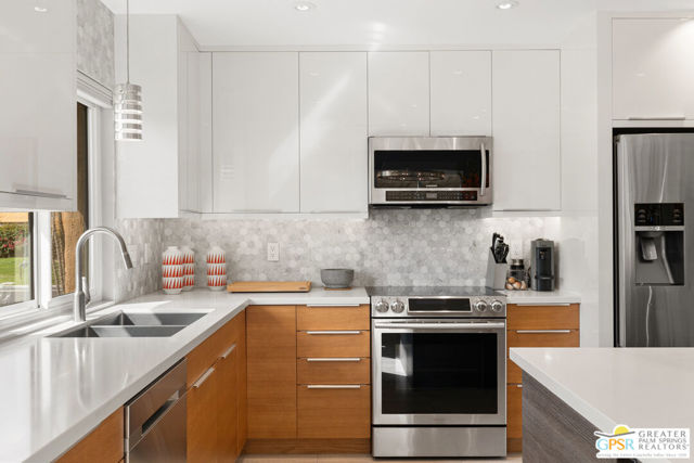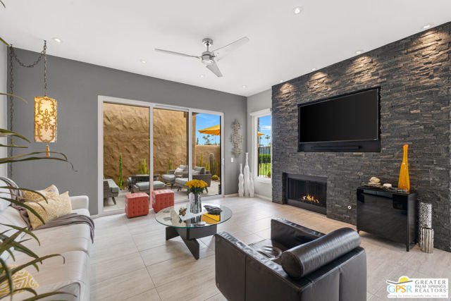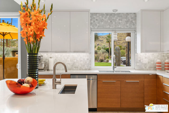 Welcome to Wonderful Waverly Park in South Palm Springs ~ ~ an exceptional Gated Community ~ a unique home offering Southern and Western Mountain views (unlike many homes in Waverly Park). This One Story ~ Two Bedroom ~ Three Bathroom (2 3/4 Shoer Baths + Powder Room) Condominium offers exceptional Southern and Western Mountain Views from its interior park-like location in the complex - Totally and beautifully updated ~ The delight begins as you enter the light-filled Great Room connecting the Living and Dining Areas with the Open Kitchen ~ Ceramic Tile flooring (from Spain) flows seamlessly throughout extending to the private outdoor spaces, creating a spacious natural and cohesive feel ~ The Living and Dining Areas have Glass Sliding Doors opening to the wraparound patio areas ~ The sense of spaciousness seems amazing ~ The Living Room has a Gas Fireplace enhanced with Granite Ledge Stone adding warmth and character ~ Interesting Updated window treatments enhance the home's private relaxed elegance ~ The enviable remodeled kitchen combines style and functionality with Quartz Countertops ~ Oversize Island with Breakfast Bar Seating, extensive cabinetry, Carrera Marble Styled Ceramic Backsplash, stainless steel appliances, and abundant storage. The spacious Primary Bedroom Suite includes a fully remodeled Shower Bath using imported Spanish Porcelainosa Tile from Spain with custom cabinetry, quartz countertops, a frameless glass shower, and designer tile finishes ~ Double Closets Plus ~ The Secondary Bedroom Suite offers a beautifully updated Shower Bath, also using imported Spanish Porcelainosa Tile from Spain with another frameless glass shower, quartz countertops and elegant tile work ~ Additional highlights include direct access to a large two-car garage, newer insulated garage door panels, in-garage laundry with gas or electric dryer hookups, abundant storage, and thoughtful upgrades throughout including a fresh poxy Floor ~ All newer Windows and Sliding Doors ~ Newer roof installed by HOA ~ Newer Water Heater ~ Please note: The only common walls in this unit are the garage walls ~ Situated on fee simple land (you own the land), Waverly Park residents enjoy exceptional community amenities including three pools, three spas, tennis courts, pickleball courts, and beautifully landscaped grounds. HOA dues cover water, trash, roof maintenance, exterior stucco, and common area landscaping. Ideally located just minutes from world-class golf, scenic hiking trails, shopping, and Palm Springs' vibrant dining and entertainment, this home offers the perfect combination of comfort, style, and resort-style desert living. Potos and Video of tis property will be available early next week of 8 March ~ 2026