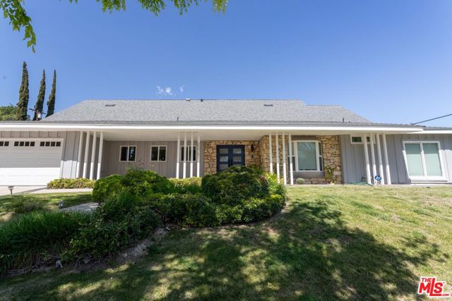 Spacious single-level 5-bedroom home set on a prime corner lot in the desirable El Camino Real School District. Originally designed by acclaimed architect Charles Du Bois, the residence reflects the timeless character and architectural style that define many of Southern California's most admired mid-century homes.Double doors open to a bright living room with soaring vaulted and beamed ceilings. The remodeled kitchen with top-tier appliances flows into a large family room centered around a striking double-sided floor-to-ceiling fireplace, creating an ideal space for everyday living and entertaining. Wide-plank hardwood floors, recessed lighting, and thoughtful updates enhance the home while preserving its architectural charm.The private primary suite opens to the backyard and features a beautifully updated en-suite bath and expansive mirrored wardrobe. Four additional bedrooms offer flexibility for family, guests, or a home office, with one bedroom positioned on the opposite side of the home for added privacy.The sun-filled backyard features a child-safe pool, mature citrus trees including lemon, grapefruit, and pomegranate, space for gardening, and multiple areas for outdoor dining. A rare opportunity to own a distinctive Charles Du Bois designed residence in Woodland Hills.