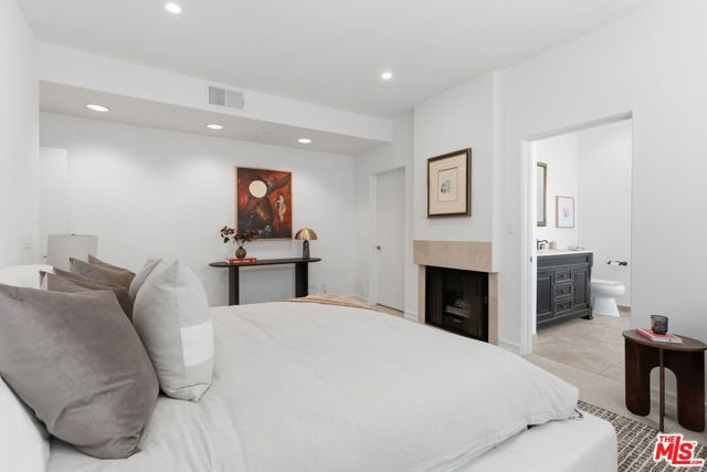 Nestled in a prime & central location, this one story 2-bedroom, 2-bathroom condo effortlessly combines modern updates with a sense of tranquility. Floor-to-ceiling windows frame the living room, offering treetops views on the east and north sides, bathing the space in soft, filtered light, especially during the morning. It's the perfect space to greet the day and come home to. .The updated kitchen boasts sleek newer cabinets, countertops, and appliances, making it as functional as it is stylish. The formal dining room provides flexible options whether you're hosting dinner parties, setting up a home office, creating a playroom, or carving out a family TV room. The primary bedroom is a true retreat, complete with a cozy fireplace, a generous walk-in closet, and plenty of room for a sitting area or desk. The ensuite bathroom features a new soaking tub, separate glass enclosed shower and duel vanity sinks. The 2nd bedroom also features lots of storage space. Both bedroom closets are designed with the Elfa modular system maximizing both space and storage. The second bathroom is full-sized, ideal for guests or family use. Conveniently located just off Westwood Boulevard and around the corner from the ever-popular House of Bread! Close to UCLA, Century City, and with easy access to the 10 freeway, this condo offers unbeatable accessibility to some of the best shopping, dining, and entertainment around. This property is within walking distance of Westwood Charter Elementary School. Move-in ready and newly painted, this home is waiting for you to make it your own!