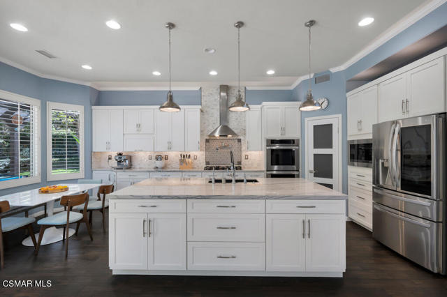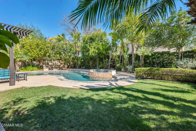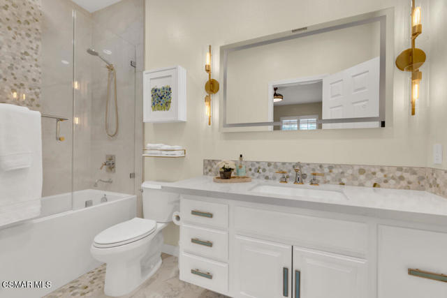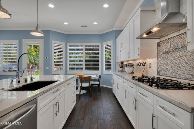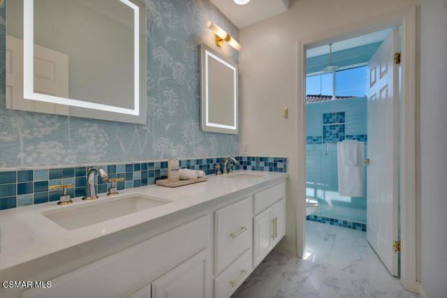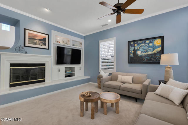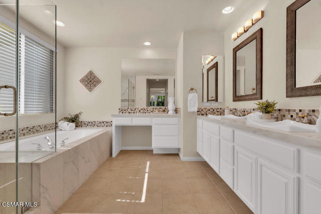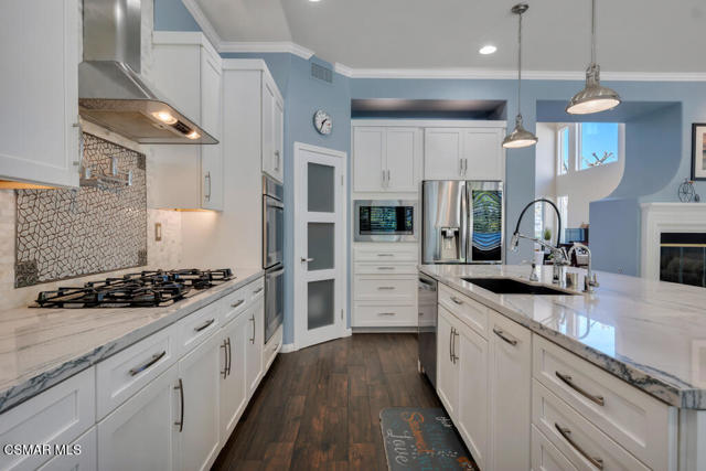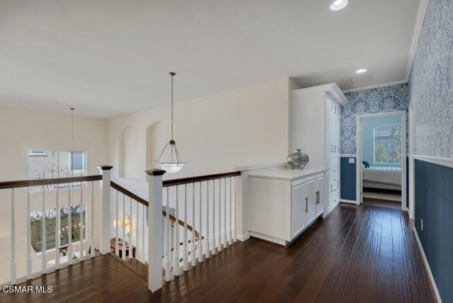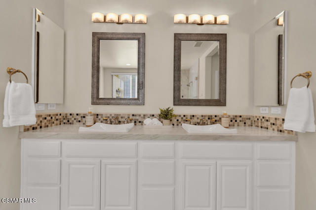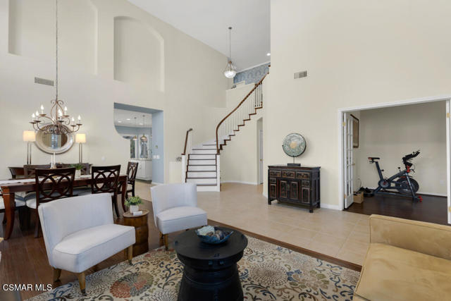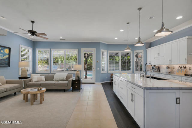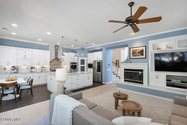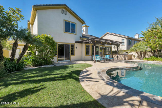 Welcome to this beautifully upgraded home where thoughtful renovations and quality improvements create the perfect blend of comfort, style, and peace of mind. Upon entering, you're greeted by soaring ceilings and an abundance of natural light. The fully renovated kitchen is an absolute showpiece, featuring white Shaker cabinetry, quartz countertops, mosaic backsplash and a convenient pot filler. The expanded island offers great additional storage while modern light fixtures combined with both under and upper cabinet lighting create a space any chef would enjoy. Ideal for both everyday living and entertaining, the adjacent TV area has been thoughtfully redesigned with a custom built-in and upper lighting, transforming the space into a stylish and functional focal point. This sought-after floor plan provides a gracious primary suite on the first level, offering dual walk-in closets, a stylishly remodeled bath done in marble and direct access to the beautiful backyard. On the second level, you'll find three nicely proportioned bedrooms and two additional baths, both of which have been tastefully updated with a modern flair. You'll also find a spacious bonus room, which could easily be transitioned into a 5th bedroom and an added linen closet in the hallway for exceptional organization and convenience. Need space to work from home? We've got you! Conveniently located off the front entry is a perfect office, accessed through charming French doors and measuring almost 200 sq ft. The backyard is designed for both relaxation and efficiency. Enjoy a resurfaced, salt water pool & spa with new coping, energy-efficient pool pump, and LED lighting for stunning evening ambiance. The pergola adds warmth and charm--ideal for outdoor gatherings. Additional upgrades such as a new roof (2022), two energy-efficient AC units and a Flo by Moen smart flow meter, provide enhanced functionality and protection. This home offers not only beautiful design updates but also significant mechanical and infrastructure improvements--making it truly move-in ready. This is a rare opportunity to own a meticulously maintained and thoughtfully upgraded property that blends elegance, efficiency, and lasting value. Combine that with being located within the spectacular, natural beauty of Dos Vientos with its hiking trails, spacious parks and excellent schools and this is truly a win for the ages!