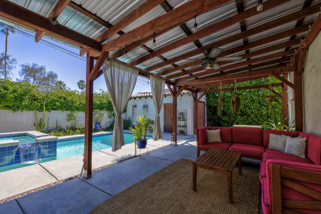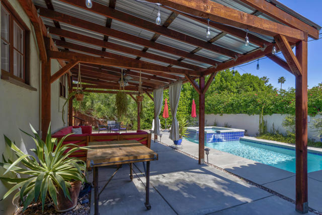 Welcome to this charming Palm Springs retreat where classic character meets thoughtful modern updates. This adorable and cozy home features beautifully preserved original hardwood floors and vintage window and door casings, creating warmth and timeless appeal throughout.The fully updated kitchen and bathroom blend modern style with the home's authentic Palm Springs charm, offering a move-in ready experience for full-time living or a desert getaway.Step outside to a private backyard oasis with lush landscaping, a sparkling pool and spa, and inviting patio spaces perfect for relaxing or entertaining under the desert sun.A detached one-car garage offers additional flexibility and potential for conversion to an ADU, guest casita, or creative studio.This home has also been a successful short-term rental, presenting an attractive opportunity for buyers seeking both lifestyle and income potential in one of Palm Springs' most desirable locations.