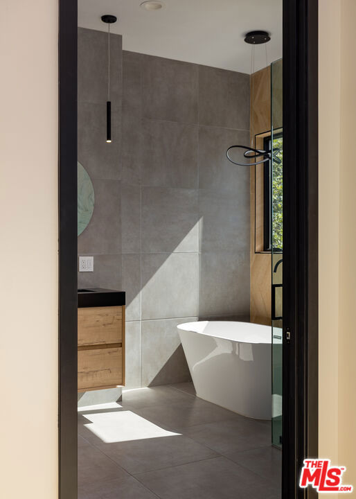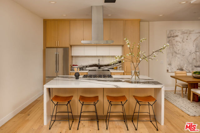 Brand new hillside construction in Mount Washington, located within the coveted Mount Washington School District. Clean lines, big views, and three levels of modern living done right. Perched above the street, this newly built 2,635-square-foot architectural residence makes an immediate impression. A sculptural staircase sets the tone upon entry, while a solid mahogany front door frames a striking indoor fireplace that anchors the living space. Milgard sliding glass doors open wide onto a tiled terrace, blurring the line between indoor and outdoor living and creating an effortless setting for entertaining, set against a backdrop of rolling hills. The kitchen and dining areas flow together over wide plank white oak floors. At the center is a chef's kitchen featuring dramatic Italian porcelain slab surfaces, a generous island for gathering, and a professional-grade Thermador appliance suite designed for both performance and style. A discreet powder room completes the main level. Upstairs are two secondary bedrooms and a full bath, along with a serene primary suite featuring a private balcony, walk-in closet, and a spa-like bathroom with a freestanding soaking tub, floating oak vanity, and large-format porcelain tile. Above it all, a sweeping rooftop deck wraps from the side of the home to the front approach, capturing layered views of hillside architecture, mature trees, and the distinctive terrain that defines Mount Washington. Wrapped in smooth stucco and modern composite cladding and thoughtfully set into the hillside, this home delivers architectural presence, privacy, and the indoor-outdoor lifestyle buyers are searching for in one of Northeast Los Angeles' most sought-after neighborhoods.