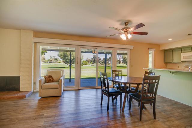 Nestled on a quiet cul-de-sac within the prestigious De Anza Villas, this 2-bedroom, 2-bathroom sanctuary offers the ultimate desert lifestyle directly on the lush fairways of the De Anza Country Club. Combining mid-century character with modern efficiency, the home is powered by a full solar system, ensuring sustainable living and significant energy savings. Inside, the 1,348 sq. ft. open-concept layout is bathed in natural light and anchored by a stylishly updated kitchen featuring newer appliances and durable laminate flooring that extends through the main living areas. The heart of the home is the inviting living room, where a classic fireplace is flanked by a versatile bonus alcove. With its inspiring views of the greens, this space is perfectly suited for a quiet study or a scenic home office. The private quarters offer equal comfort, with newer carpeting in both bedrooms and a master suite that serves as a true retreat. The master bath has been upgraded with a contemporary tile shower, and a secondary bonus room off the master bedroom provides the perfect solution for hobby space or climate-controlled storage. Step outside to the private patio to enjoy the serene silence of the Borrego desert and panoramic golf course vistas. With HOA-covered grounds maintenance, a community pool, and tennis courts, this home offers a seamless, turn-key experience in one of Borrego Springs' most coveted locations.