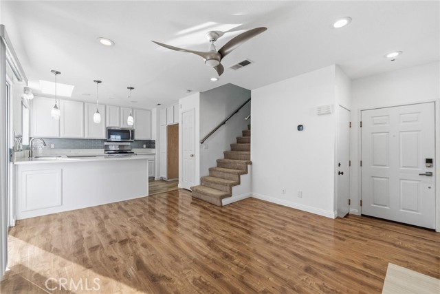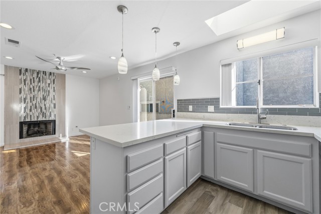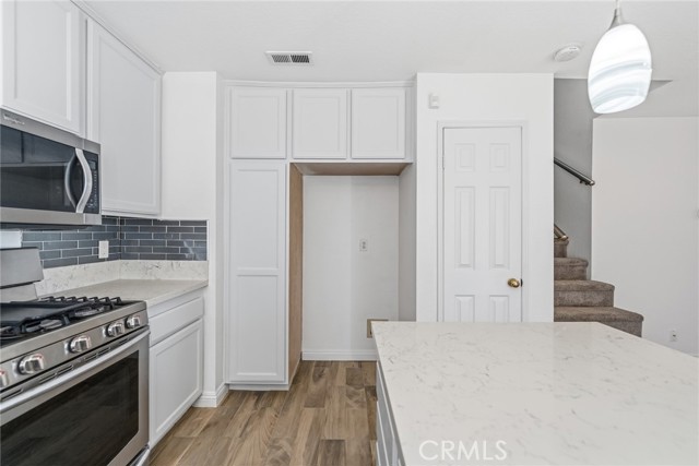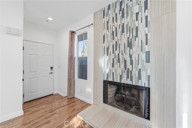Welcome to this beautifully upgraded end-unit condo featuring 3 spacious bedrooms, 2 full bathrooms, and a 2-car attached garage. This cozy home is move-in ready and thoughtfully enhanced with modern conveniences. Enjoy cooking in the remodeled kitchen with white shaker cabinets, quartz countertops, reverse osmosis water filtration, and Samsung stainless-steel appliances. The open layout flows into a warm living room with a fireplace and sliding glass doors that lead to a wrap-around patio—perfect for morning coffee or outdoor dining. Upstairs, you’ll find all three bedrooms and two remodeled bathrooms, including a primary suite with a glass-enclosed shower, large jacuzzi tub, and private balcony. A stackable washer and dryer are conveniently located in the upstairs laundry closet. Recent upgrades include a new HVAC system, new water heater, EV charger, smart Wi-Fi door lock, Ring doorbell, outdoor floodlight camera, security system, and Wi-Fi garage door opener with battery backup. Guest parking is located directly across from the unit. Located in the heart of Cypress, this home offers access to top-rated schools including Oxford Academy, nearby parks, shopping, and dining. A perfect blend of comfort, convenience, and value.