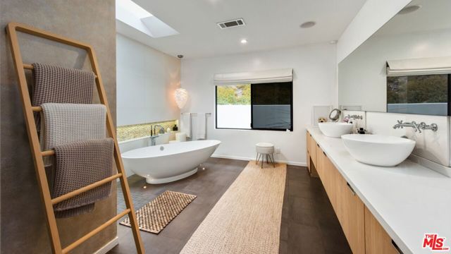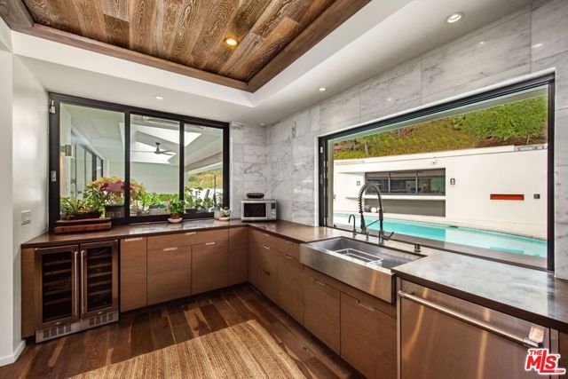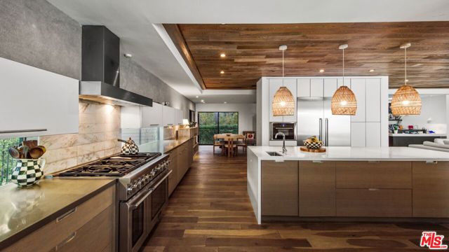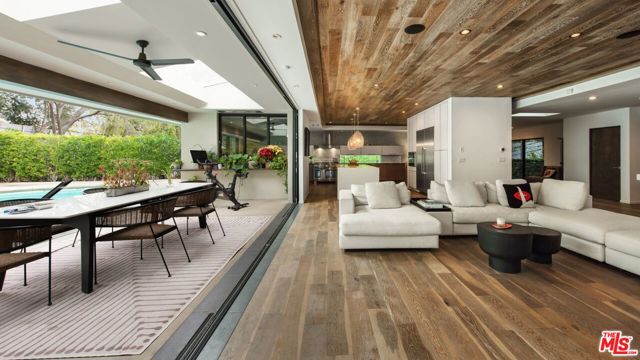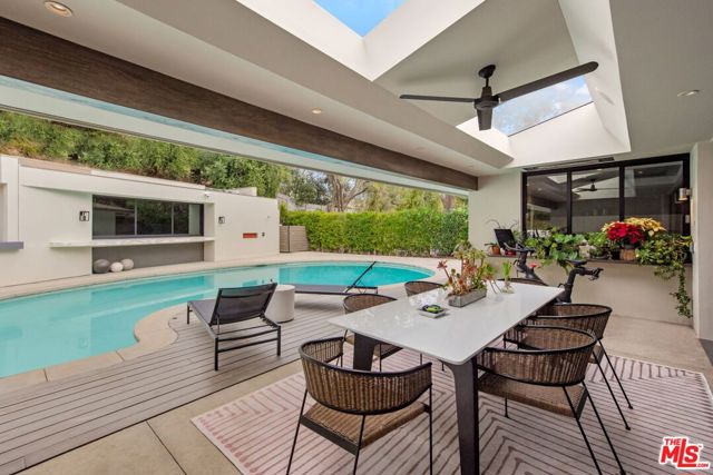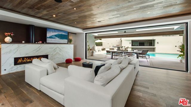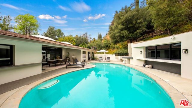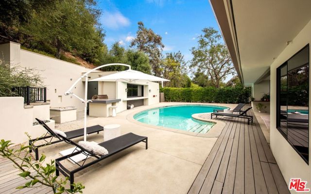 Hilltop Sanctuary nestled in the prestigious "Clark Gable Estates" built in 2015 by Famed Architect Jon Brouse. Privately Gated Poolside Oasis. Furnished 4 Bed 4.5 Bath includes separate Bungalow + Office. Single level Designer Dream home, 7ft Glass Pivot Door Entry & Open Floor Plan, Fleetwood Glass Doors disappear into walls to create a Flowing Indoor/Outdoor Lifestyle. En-suite Bedrooms, Master Suite includes Elegant Bath equipped w/ freestanding tub by Albert Napoli, Walk in Shower, Pivoting Wall accesses adjoining private room for use as Office, Yoga Studio. Floors & ceilings of Distressed French Oak. Sky lights, Sexy 5' Linear Fireplace. Speakers indoor/out. Chef's Kitchen, Stainless Steel Appliances, Large Center Island w/ bar seating, Pocket Windows, Glass Walls open to Lush Pool Area, Wood Decking, Water Features, Heated Bar, Multiple Patios w/ built-in seating, Fire Pit, Outdoor Kitchen, Guest House w/ pocket windows that vanish open to a Poolside Bar. The epitome of luxury, offering a serene and sophisticated lifestyle in one of the most exclusive settings.