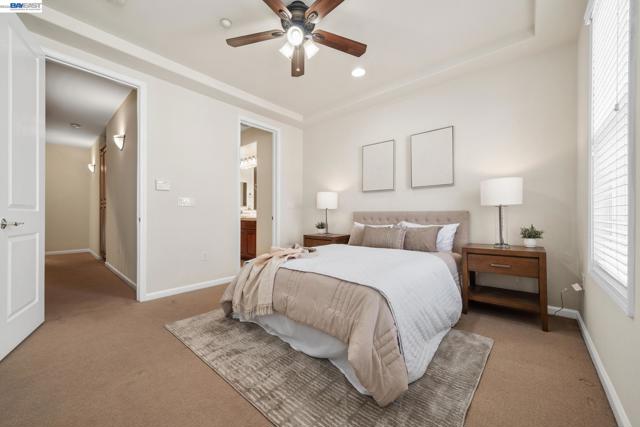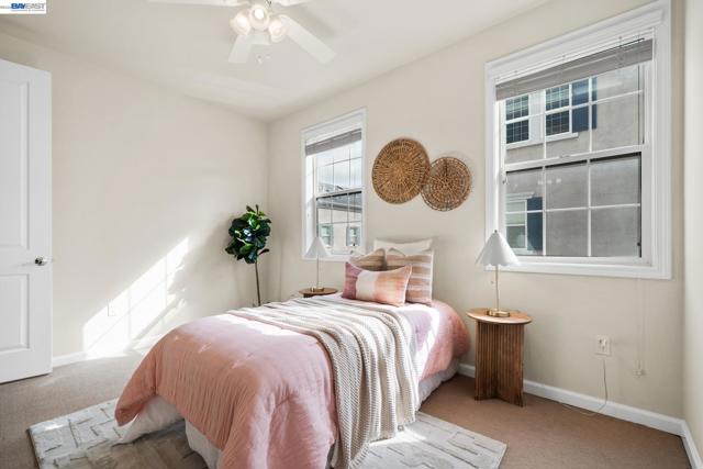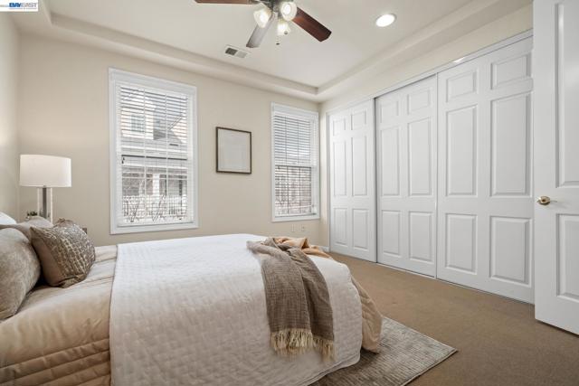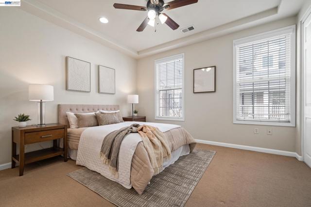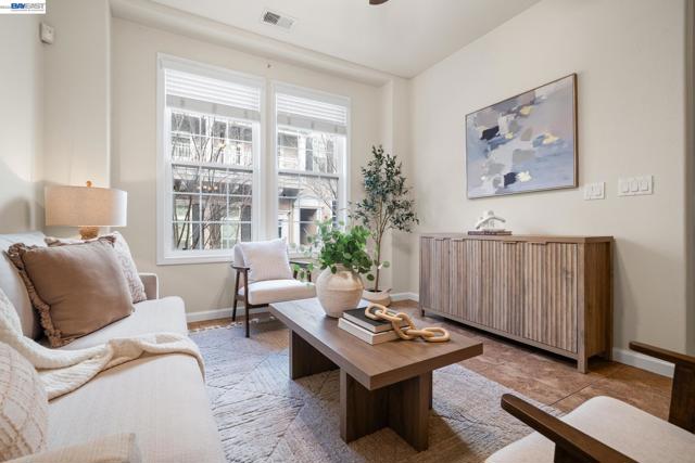Welcome to this beautifully designed townhouse-style condominium offering the comfort and privacy of a single-family home. With its own private entrance and attached garage, this residence blends convenience with modern living. The home features three spacious bedrooms, each with its own en-suite bathroom, providing ideal privacy for family members or guests. The main living level showcases an open kitchen, dining, and living area, complemented by a convenient powder room for visitors. Step outside to the inviting front porch, a perfect spot for urban gardening, enjoying morning coffee, or setting up a barbecue grill while relaxing in the neighborhood atmosphere. Residents enjoy a low HOA fee while benefiting from wonderful community amenities including a pool and clubhouse. The location is exceptional—situated next to new Emerald High School and a nearby neighborhood park. The home is also within walking distance to shops and restaurants, with easy access to major freeways for commuting. Outdoor lovers will appreciate the short stroll to Emerald Glen Park, known for its vibrant community events and popular farmers’ market. A rare opportunity to enjoy comfort, convenience, and an active community lifestyle in one of Dublin’s most desirable locations.