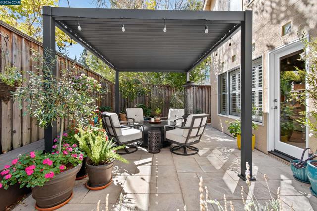 A slice of perfection in The Lake at Canyon Lakes, a 24/7 staffed gated San Ramon community nestled along the Canyon Lakes 18-hole golf coursesurrounded by resort-style amenities, pools, clubhouse, tennis/pickleball cts,miles of walking paths. $150,000+/- in upgrades/features. 1960+/-SF 2-leveltownhome in Sunrise Cove neighborhood. Meticulously maintained.3 bds. 2.5 bths. New LVP/carpet flrs. Fresh int.paint. Refinished bath tile. Recessedlighting.Custom plantation shutters on 23 windows.Upgraded wiring.16 PRE-PAID TESLA SOLAR PANELS, BATTERY WALL & CHARGER.Electric as lowas $100/month depending on usage.Vaulted ceilings.Skylights.French dr access to beautifully designed bkyd.Water-proof pergola.Stamped concretepatio.New Cal Spa 4-person hot tub.Privacy fencing.Chef’s kitchen w/granite counters, decorative tile bksplsh,peninsula island/breakfast bar. Pendantlighting.Samsung 4-dr frig.New KitchenAid dishwasher.Range & microwave.Fam rm/casual dining.Gas frp in living/dining area.Primary suite w/vaulted ceiling, walk-in closet.En suite w/dual-sink vanity, jetted tub, large shwr, new toilet.Frt-facing bdrm w/vaulted ceiling.2-car garage.Newer roof and gutters.Laundryrm.Ring drbell.Privacy, security.2 mi to Crow Canyon Commons Shopping Ctr.Near top-rated SRVUSD schls and parks.