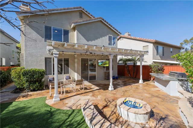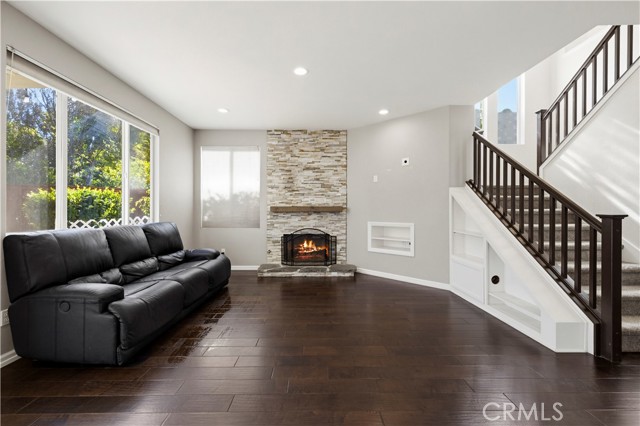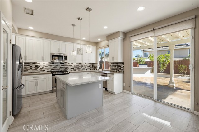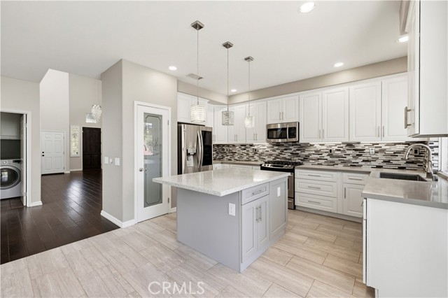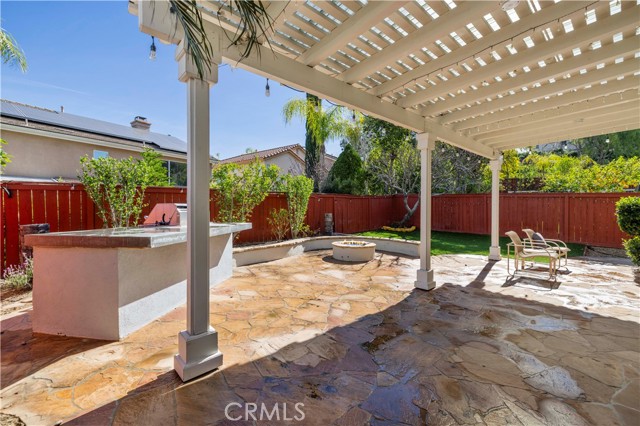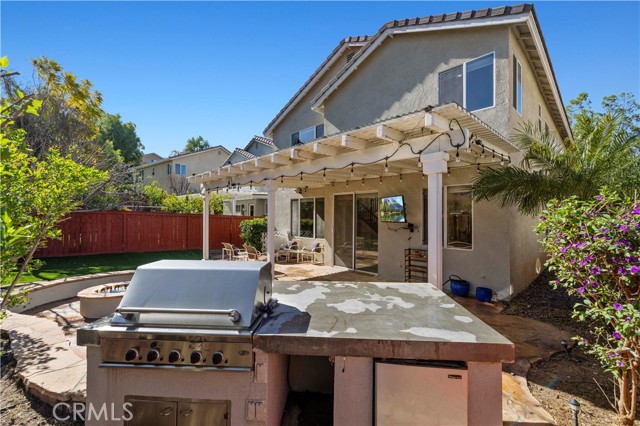 Stunning home nestled in the hills of Santa Clarita . As you enter, you’ll find vaulted ceilings with high windows that fill the home with warm natural light. The main level features gorgeous wood flooring in the entry, formal living room, dining room, and family room. The formal dining room sparkles with a beautiful chandelier and opens to the family room, complete with a new fireplace and mantel—perfect for cozy evenings. The exquisitely remodeled kitchen with center island features a glass tile backsplash, Corian countertops, stainless steel appliances, and crisp white cabinetry that keeps everything looking fresh and bright. Upstairs, the spacious primary bedroom leads to a beautifully remodeled primary bath featuring custom tile, elegant fixtures, and a stunning freestanding tub—perfect for relaxing after a long day. A large open loft with wood flooring provides a wonderful extra living space or could easily serve as a 4th bedroom. Both secondary bedrooms are generously sized. The hall bathroom has been tastefully remodeled with a large step-in glass shower and custom tile. Step outside to your private backyard oasis, complete with built-in planters filled with fruit trees, a covered patio, fire pit, built-in barbecue with refrigerator, and low-maintenance artificial turf—ideal for entertaining or simply enjoying the California sunshine. The 3rd car area in tandem garage is currently set up as a work room studio. The neighborhood also features a small pocket park nearby for children and pets to play. And for commuters, the property is conveniently located less than 3 miles from the 14 Freeway.