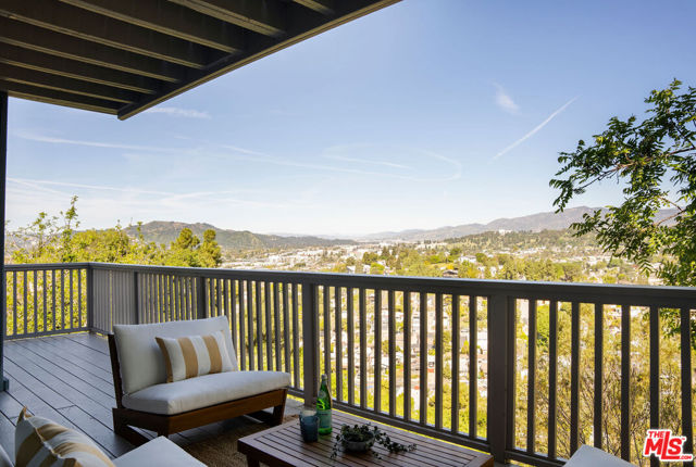 Perched in the hills of Mount Washington, this stunning view home blends classic mid-century modern character with thoughtfully updated interiors. Designed to capture the beauty of its surroundings, the home features expansive views and an open living and dining area that frame the Los Angeles skyline. The remodeled kitchen offers style and function, seamlessly connecting to the main living spaces. Beautiful custom built-ins add warmth and architectural interest throughout the home. Upstairs, the primary suite feels like a private retreat, with a balcony showcasing its own incredible views. Two additional bedrooms provide flexibility for family, guests, or a home office. The upstairs bathroom has been beautifully remodeled with terrazzo floors, a sculptural tub, and plenty of storage. Two private decks invite you to step outside and soak in the remarkable scenery perfect for morning coffee or sunset gatherings. This Mount Washington residence offers a rare opportunity to experience elevated hillside living in one of Los Angeles' most coveted neighborhoods.