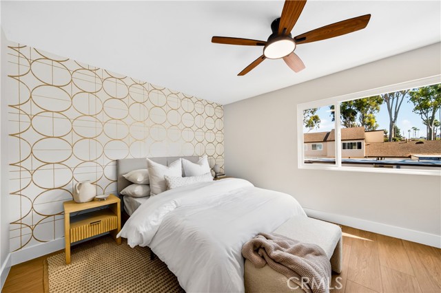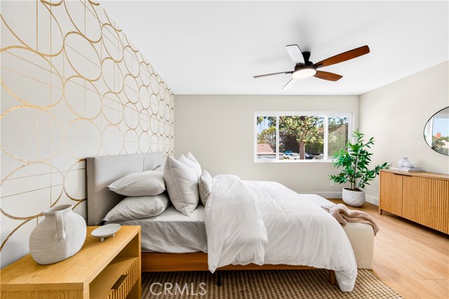 Exquisite SoCal Transitional Modern Remodel – This property offers access to the highly regarded Palos Verdes Peninsula School District. This beautifully reimagined home showcases a warm, light, and airy design with natural tones and layered textures, complemented by champagne bronze fixtures for a polished, cohesive look. Completed as a full custom remodel by a professional contractor, no detail was overlooked. Interior Highlights: All-new Beach Collection Carmel flooring and baseboards, fresh Shoji White walls with Alabaster trim, and recessed lighting. Also includes dual-paned windows and HVAC. Downstairs and the stairwell feature Luna Copper Distressed Chevron wallpaper for a sophisticated touch. Kitchen: Custom-designed with a walk-in pantry, breakfast nook, and peninsula. Features newly added cabinets, appliances, veined Calacatta Laza Oro quartz countertops, and a textured herringbone backsplash from counter to ceiling. Woven pendant lighting and wall sconces add artisanal charm. Primary Suite & Bath: Champagne bronze finishes and geometric accents echo the curated wallpaper and tile selections, creating a cohesive, elegant retreat. Sun Circles wallpaper in Cream Gold enhances the ensuite. Downstairs Bath: Fully updated with a new shower addition. Exterior & Patio: Refreshed landscaping with new trees and plants creates a serene outdoor space, perfect for entertaining or relaxing. Living in the Strathmore community of Rancho Palos Verdes offers a serene and well-maintained neighborhood with beautifully landscaped common areas and a welcoming, family-friendly atmosphere. Residents enjoy access to community amenities such as a pool, clubhouse, and walking paths. The location is ideal, with easy access to local parks, top-rated schools, and shopping centers, all just a short drive or walk away. Enjoy the coastal lifestyle with nearby trails, scenic viewpoints, and convenient proximity to dining and everyday essentials. A thoughtfully designed home where every detail elevates the living experience – truly turnkey and move-in ready. Attached to your private patio is your 2-Car detached Garage. You can also enjoy the amenities and magnet programs available through the Los Angeles Unified School District. Just bring your toothbrush!