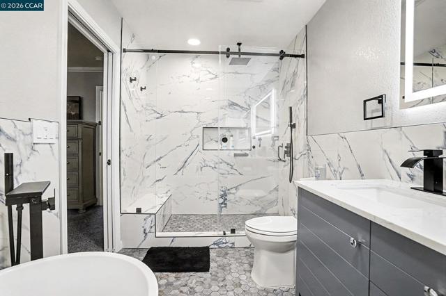 Amazing, fully remodeled single-story home in desirable Union City—seller highly motivated! This 4-bedroom, 2-bath residence features a brand-new gourmet kitchen with white cabinetry, quartz countertops, designer backsplash, stainless steel appliances, recessed lighting, and hardwood floors. Enjoy all-new modern bathrooms with luxurious vanities, oversized glass-enclosed showers, and a freestanding soaking tub in the primary suite. Major upgrades include new plumbing (fully repiped), new electrical with updated panel, new furnace, new A/C, dual-pane energy-efficient windows, and new carpet in the bedrooms—creating a comfortable and energy-efficient living environment. The private backyard backs to a main road, offering the advantage of no rear neighbors and added openness, while the home’s upgrades and dual-pane windows help maintain interior comfort. Outdoor highlights include low-maintenance landscaping, stamped concrete, a gazebo, covered patio, RV access, and a movable storage shed for flexible use—perfect for entertaining, hobbies, or extra storage. Conveniently located near schools, parks, shopping, and easy freeway access. Two-car attached garage and spacious driveway complete this exceptional property. Turnkey, upgraded, and priced to sell—don’t miss this opportunity!