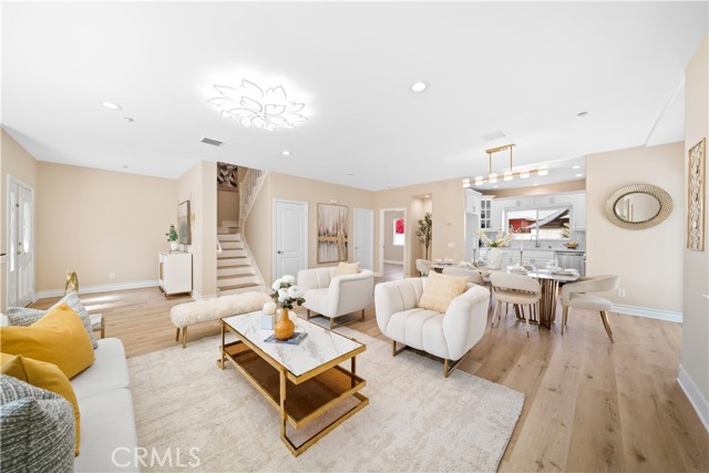 A stunning detached gated condo located in a prime area of Monterey Park. This home has been totally remodeled with a modern look and is in move-in condition. - Recent Upgrades are included with new SPC flooring, new interior paint, a new electric fireplace, and a new kitchen featuring new appliances, full backsplashes, and quartz countertops. A spacious great room and an open-concept kitchen facing the dining and great room areas. There is 1 bedroom in the main floor makes a convenience for in-law suite or guest. There are total 3 spacious bedrooms plus a loft area that has been converted into an office for an extra working space or children's play room. The downstairs bathroom has been beautifully re tiled on the wall and flooring with designer's touch. All 2 other bathrooms upstairs have brand new quartz countertops and faucets. All elegant chandeliers are new as well as the recess lightings. The home is filled with natural light, is very airy, and includes a 3-car attached garage. Conveniently located near shops, bus stations, and freeway access. In addition, walking distance to Monterey Vista Elementary School and minutes drive to Mark Keppel High School. These are all top rated schools!