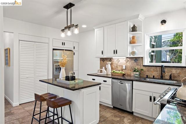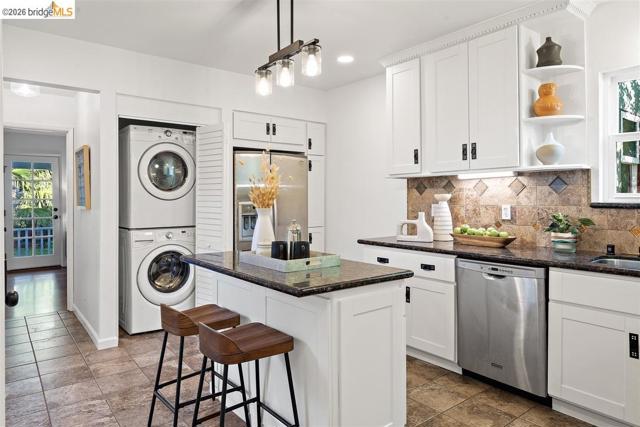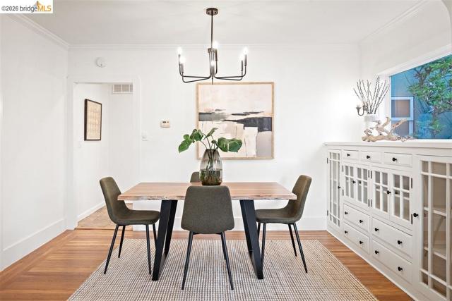 Sunny home on a quiet street in North San Leandro, just blocks from Zocalo Coffeehouse, As Kneaded Bakery, Safeway, and other neighborhood conveniences that make everyday living easy. Expanded in 2008, this classic Craftsman bungalow embodies the San Leandro lifestyle, featuring hardwood floors, built-ins, and generous windows that fill the interior with natural light while integrating thoughtful modern updates that honor the architectural character of its period. At the heart of the home, the well-appointed kitchen anchors the main living space, thoughtfully designed for both beauty and function. The primary suite is privately positioned at the rear of the home, overlooking the garden, and features a spa-like bath and ample closet space. Two additional bedrooms and two bathrooms complete the well-balanced layout. Outside, a detached studio/office provides flexible space for work, hobbies, or creative pursuits. The spacious backyard features a patio, fruit trees, and a two-car garage—all ideal for gardening, relaxation, and weekend projects. Solar enhances energy efficiency, and the property is located within the San Leandro School District. Offering beauty, location, and thoughtful amenities, this home is the perfect fit for every stage of life. Open 3/14-15 2-4PM
