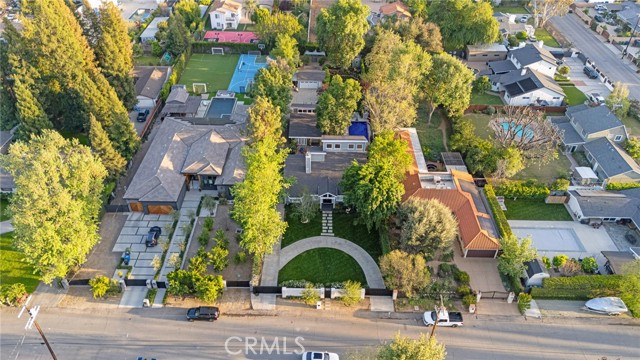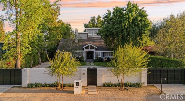 Rare opportunity in the highly desirable Walnut Acres, known for its oversized estate lots and luxury homes. Located on one of the neighborhood’s most sought-after streets, Collins Street, a quiet cul-de-sac lined with beautiful estates, this exceptional gated compound sits on over half an acre and features two homes on one expansive lot. The fully permitted detached guest house (approx. 1,400 sq ft) is turnkey and offers a full kitchen, main-level bedroom with walk-in closet, cathedral ceilings, dedicated laundry room, upstairs loft, walk-out balcony, plus brand new appliances and flooring. The main residence sits far back from the street behind automatic gates with a circular driveway, RV parking, and space for 20+ cars. Inside features cathedral ceilings, hardwood floors, and abundant natural light. The main level offers three bedrooms plus an office or optional fourth bedroom, and a beautifully remodeled kitchen with center island, walk-in pantry, and views of the stunning backyard. The entire second level is dedicated to the spacious primary suite, featuring two walk-in closets, a large loft plus office area, and a private balcony. The resort-style backyard features an oversized pool, koi pond, multiple water features, a huge grassy lawn, mature lemon, lime, grapefruit, and avocado trees, an organic vegetable garden, and a chicken coop for fresh eggs. Located in Woodland Hills, known for award-winning schools, with close proximity to the 101 Freeway, Topanga Village, shopping, and fine dining. With many Walnut Acres properties being subdivided, opportunities like this are becoming rare. This estate represents the true character of Walnut Acres—luxury homes on expansive lots of privacy, space, and exceptional living.