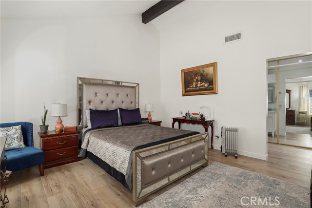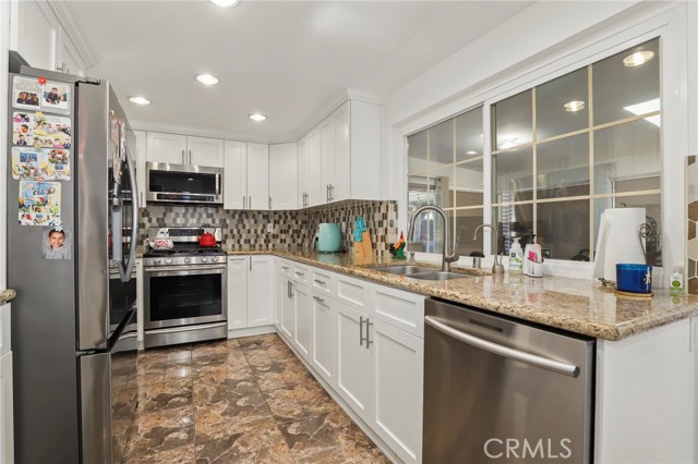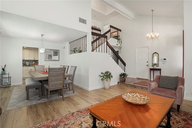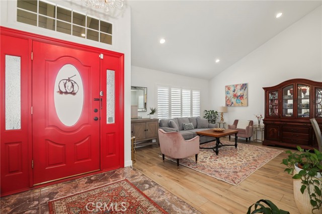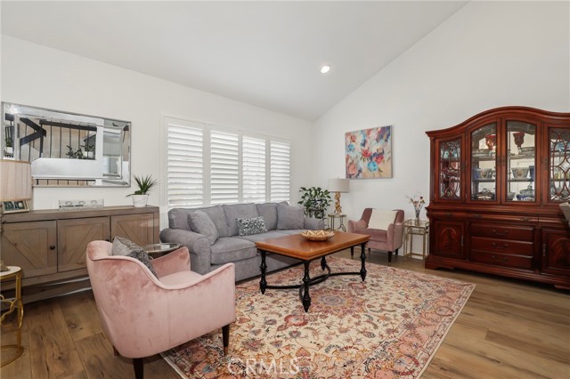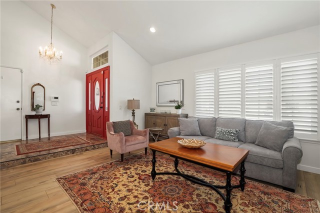 Charming Chatsworth Gem with Vaulted Ceilings & Lush Backyard. Welcome home to this beautiful 2-bedroom, 2.5-bathroom gem nestled in a wonderful Chatsworth neighborhood. Step inside to discover a bright, airy, and inviting floor plan, highlighted by soaring high vaulted ceilings in the living room. The home features easy-to-maintain laminate and tile flooring throughout, a kitchen with beautiful granite countertops, and thoughtfully remodeled bathrooms with modern finishes. The spacious primary suite also boasts high vaulted ceilings, creating an expansive and relaxing retreat. Just off the main living areas, you will find a lovely sunroom—the perfect versatile space to relax, read, or enjoy your morning coffee. From the sunroom, step right out into your own private backyard oasis. This peaceful outdoor space is beautifully landscaped with an abundance of vibrant flowers and mature fruit trees, ready for you to enjoy. Convenience meets sustainability in this home! Enjoy energy-efficient living with installed solar panels to help keep utility costs down, plus a 2-car attached garage with direct access to the interior.