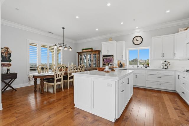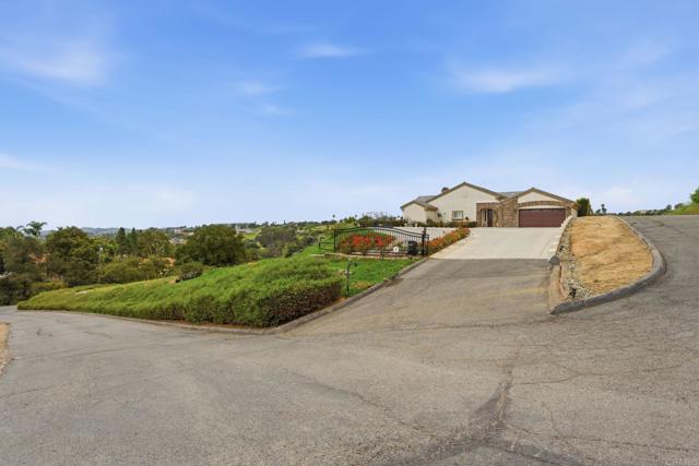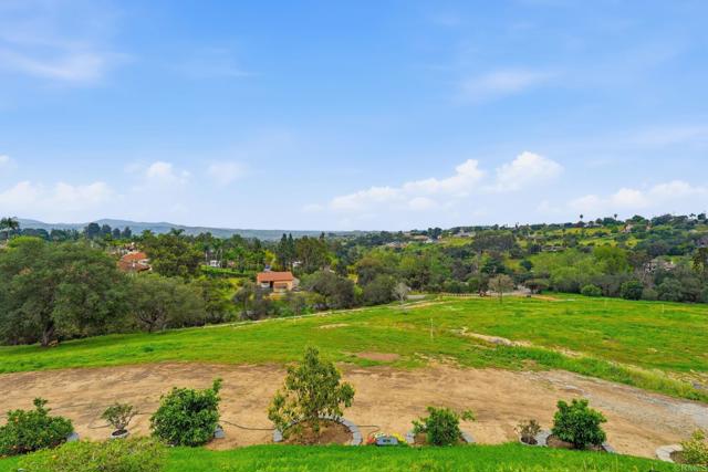 Welcome to this nearly new, single-story home, perched up on the hill overlooking beautiful Fallbrook's rural hills and valleys--on over 3 acres of land. This 2,703 square foot home features an open floorplan with 4 bedrooms and 3 bathrooms in a peaceful setting. Conveniently located, near Hwy 76, provides easy access to major roadways and nearby shopping. A commanding fireplace, beautiful wood flooring, high ceilings, plantation shutters and meticulous details showcase the craftmanship throughout this spacious home. Enjoy a magnificent kitchen satisfying your culinary desires with top-of-the-line appliances, cabinets and quartz counter tops. The floor plan is open and centers around the Great Room with a telescopic pocket door over the entire wall for indoor/outdoor living. The adjacent oversized patio is covered and extends your living space into the outdoors. The Primary Suite is luxurious with views, has a large walk-in closet and provides direct access to the patio. The Primary Bath is tastefully appointed with a soaking tub, a large walk-in shower with stone surround, and dual sinks with stone countertops. The Laundry Room is spacious and is light and bright. View the detailed photos of this home's fine finishes. An oversized finished 2-car garage with storage above is convenient and adjacent to a vehicular gated parking court. There are optional plans for an additional garage and ADU to be built on-site. Practice your putting before your golf game on your private putting green. A photo for reference, showing 3 adjacent parcels of land separately for sale, varying in size from 2 to 3 acres, has been included.