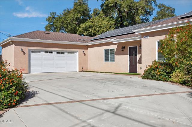 Nestled on a quiet cul-de-sac in one of the most desirable pockets of Shadow Hills, 10755 Wheatland Avenue offers a rare blend of tranquility, natural beauty, and thoughtful design. With limited street traffic, the setting is peaceful and private--interrupted only occasionally by the neighborhood's wandering peacocks.Framed by the stunning San Gabriel Mountains, this single-story home enjoys breathtaking sunrise and sunset views. Just below lies California's largest natural wash, a vibrant landscape alive with wildlife and endless opportunities for exploration. Designed with both comfort and function in mind, this newer-built home features soaring cathedral ceilings, a spacious great room with laminate flooring, recessed lighting, and a rustic fireplace that warmly anchors the living and dining areas. The gourmet kitchen flows seamlessly into the dining space, creating an inviting setting for everyday living and entertaining.The home offers two bedrooms plus a dedicated office that can easily serve as a third bedroom. The primary suite is a private retreat featuring a walk-in closet, an en-suite wet room, and direct access to the backyard where beautiful views await. The guest suite is equally well-appointed, complete with its own thoughtfully designed en-suite bath and private access to the rear yard. Additional highlights include a double attached garage, a circular driveway, paid-for solar, and a backup generator all enclosed in the security of electric gates - providing both convenience and peace of mind.